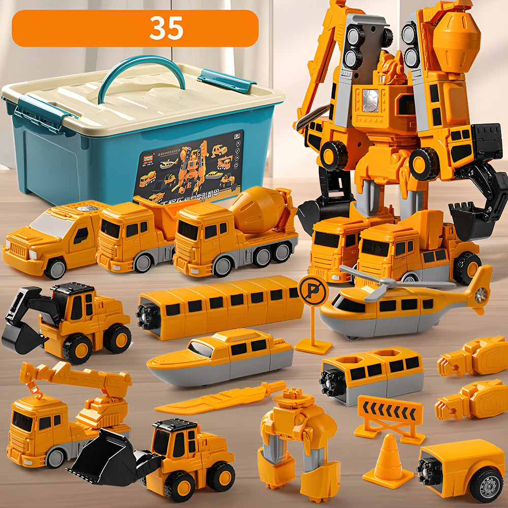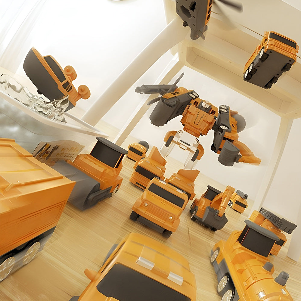 - TRANSFORMING DESIGN: The car in the set, such as trucks, forklifts, excavators, etc., can be assembled together into robots, providing endless entertainment and exploration.