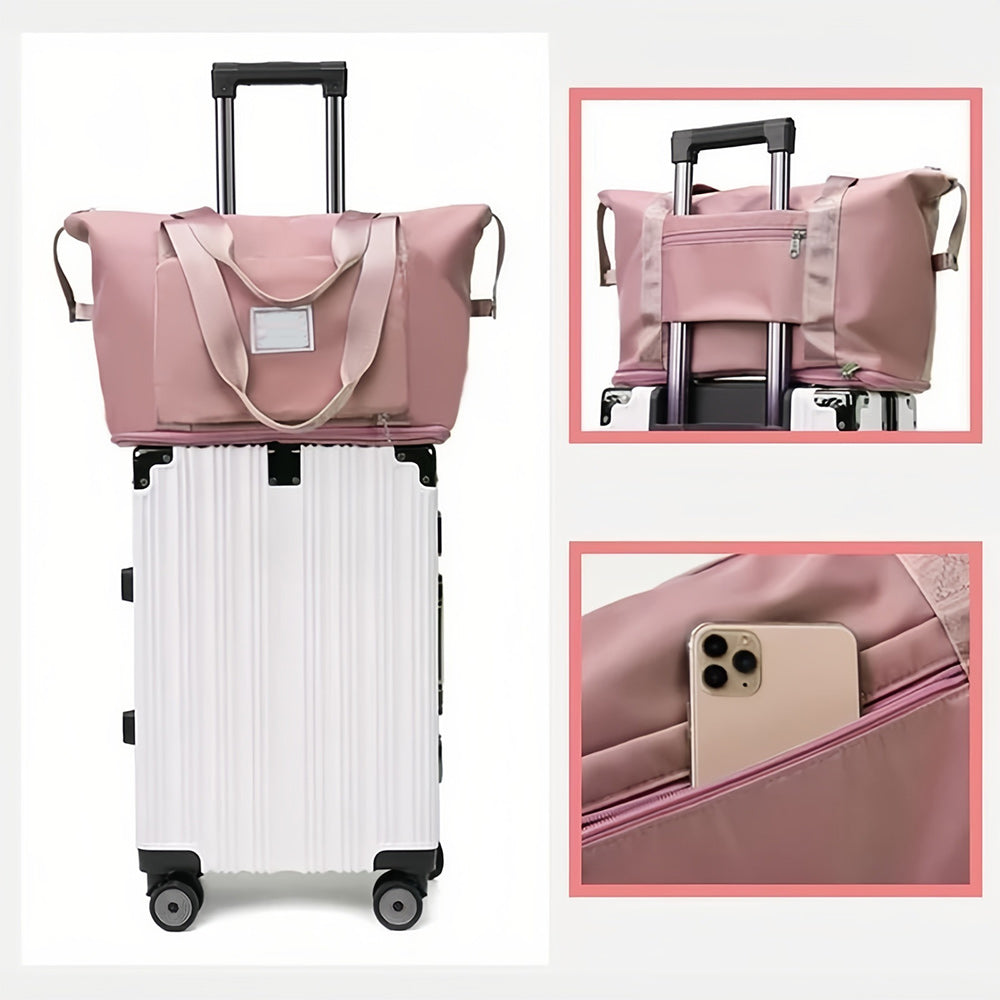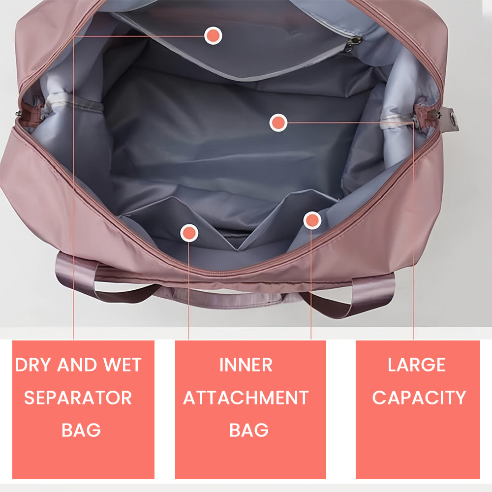 - BOTTOM EXPANSION & MULTI POCKETS The bottom of the zip hides the expansion function, so you can solve the problems caused by too many or too few items while travelling. Two zip pockets and two inner patch pockets as well as a wet and dry separator pocket on the bag. It is sufficient for short trips and easily holds 3-5 days of travelling clothes.