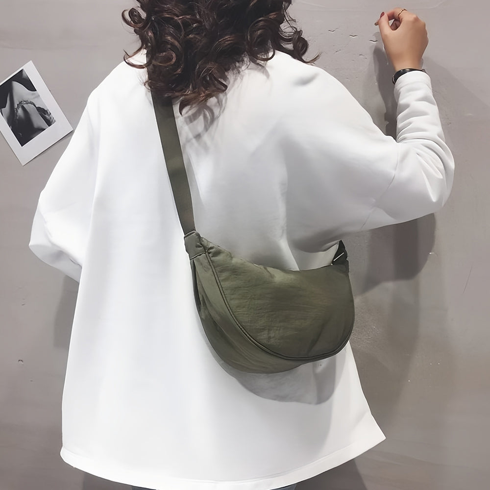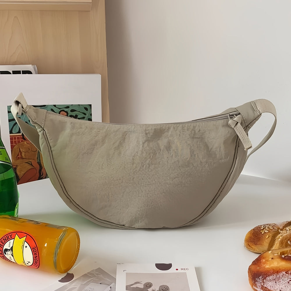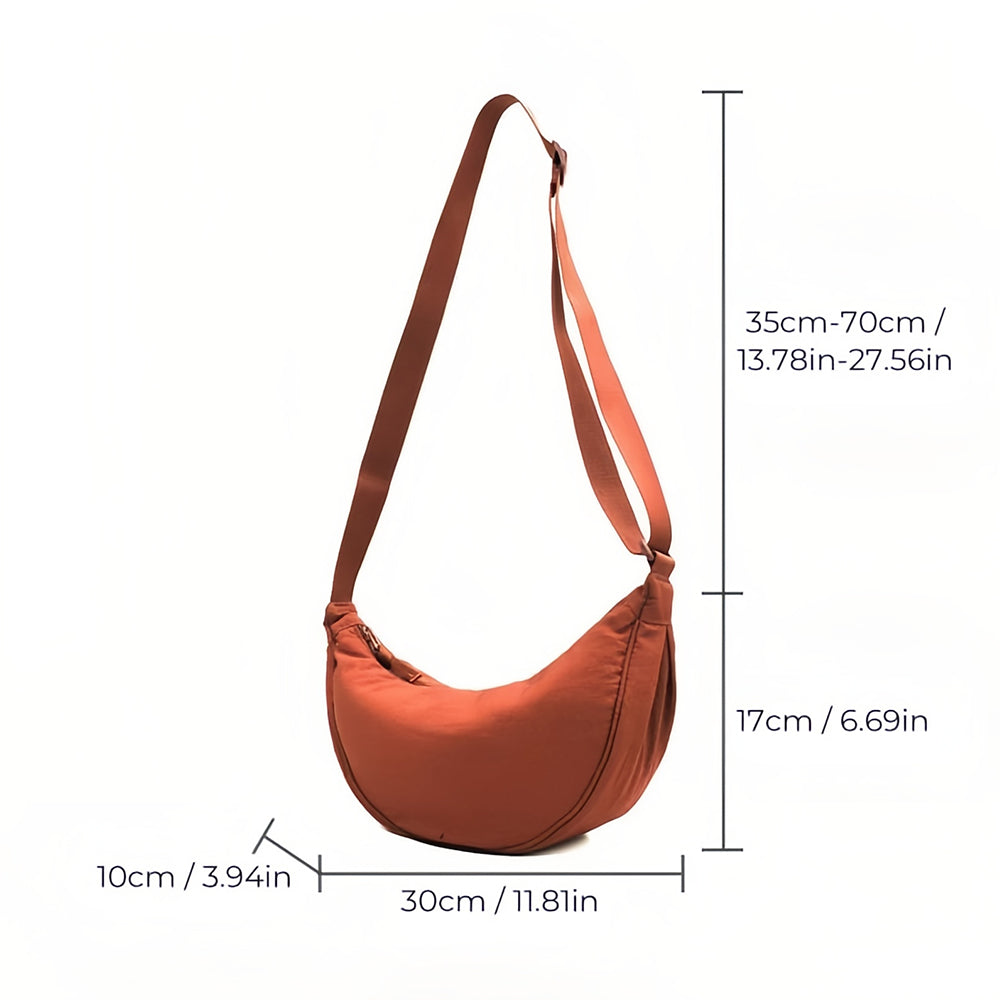 - Design -- Crescent shape, one main bag, two inner patch bags inside, can store small things in different areas. Choose high-quality zippers to ensure that they are smooth enough to not jam.