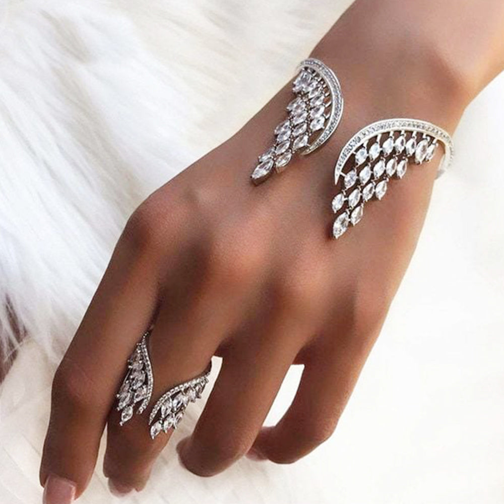- Angel Wings Diamond Bracelet And Ring Set: Angel wings are often seen as symbols of guardianship and protection, They can also represent freedom and lightness, symbolizing a spiritual state that transcends limitations and restrictions.