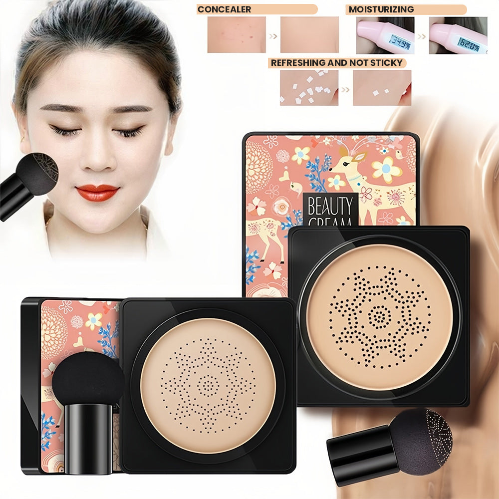- Free Unique Makeup Brush: Applies mushroom head sponge design with unique cutting & holes. Minimum water retention ensures to hold perfect amount of CC cream for flawless & non-cakey application. Great for blending, cleaning up smudges and smoothly even out CC cream.