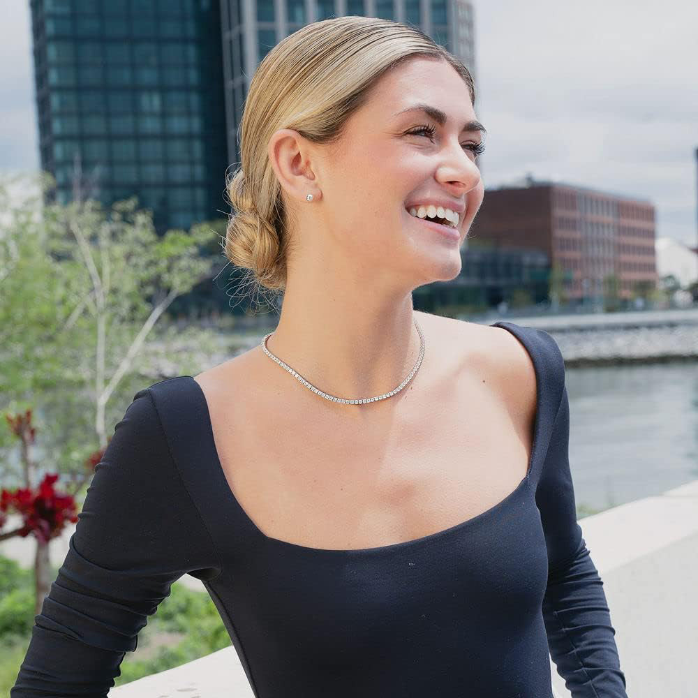- Suitable for anyone and any occasion. -- This tennis necklace is ideal gift for girlfriend, wife, sister, mom and your friends. No age and sex limited. Suitable for wear in any occasion including wedding, engagement, party, dating, home, office and daily life etc.