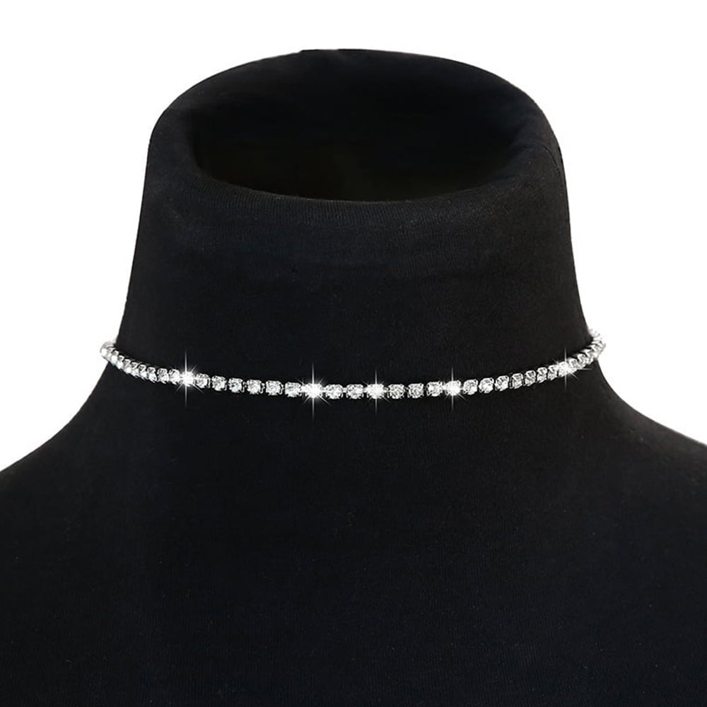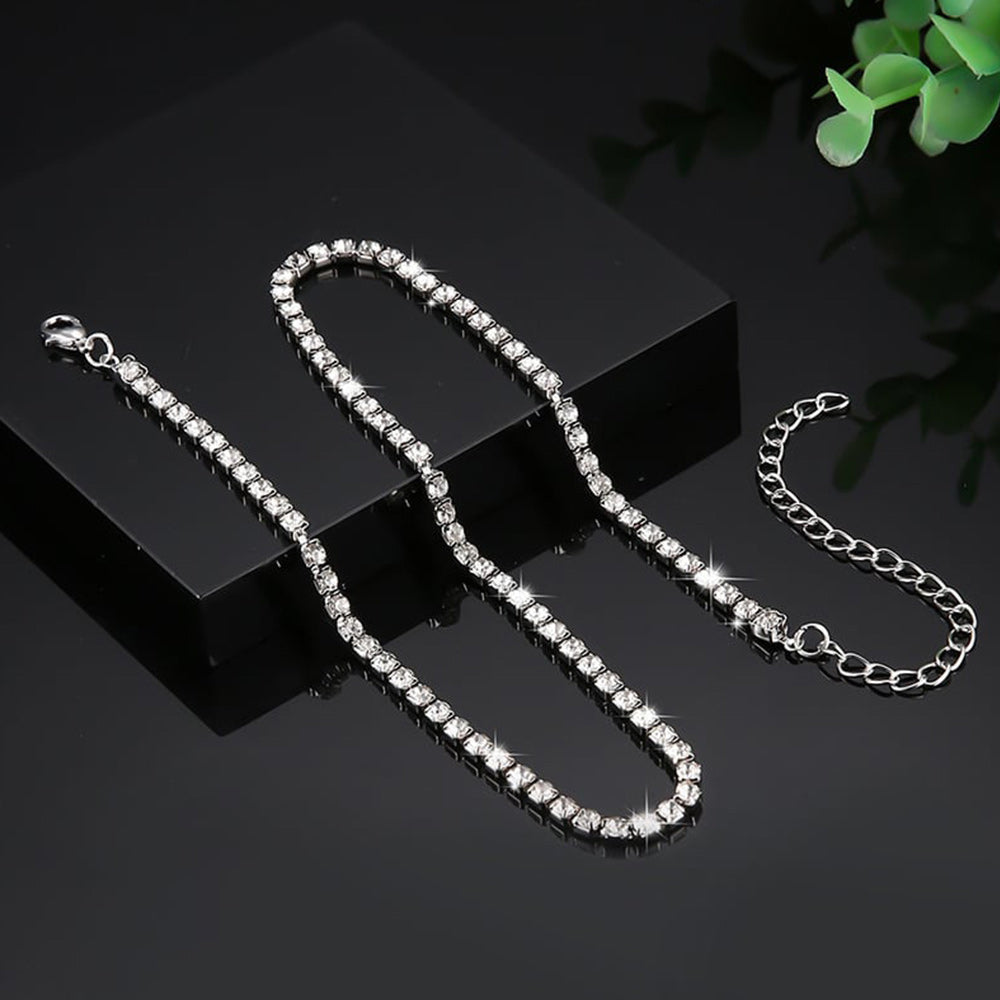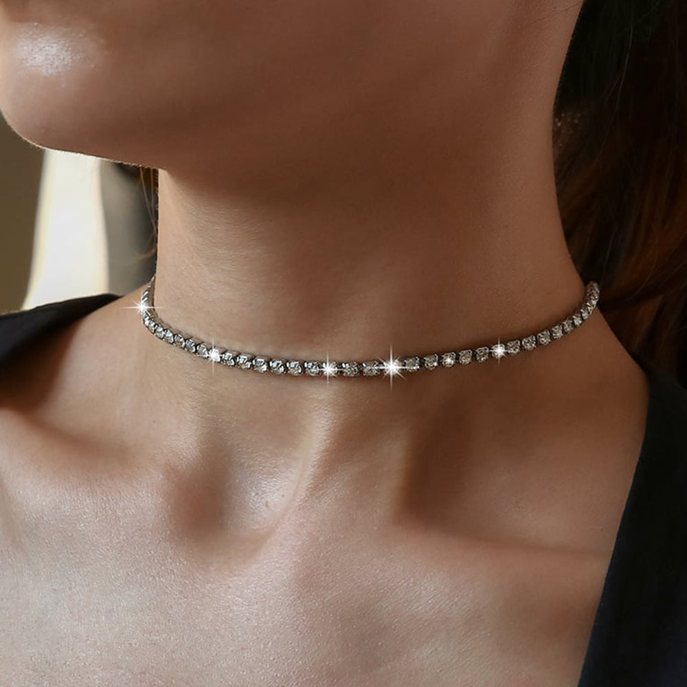 - The "Crystal" tennis necklace adds an elegant and sophisticated look.