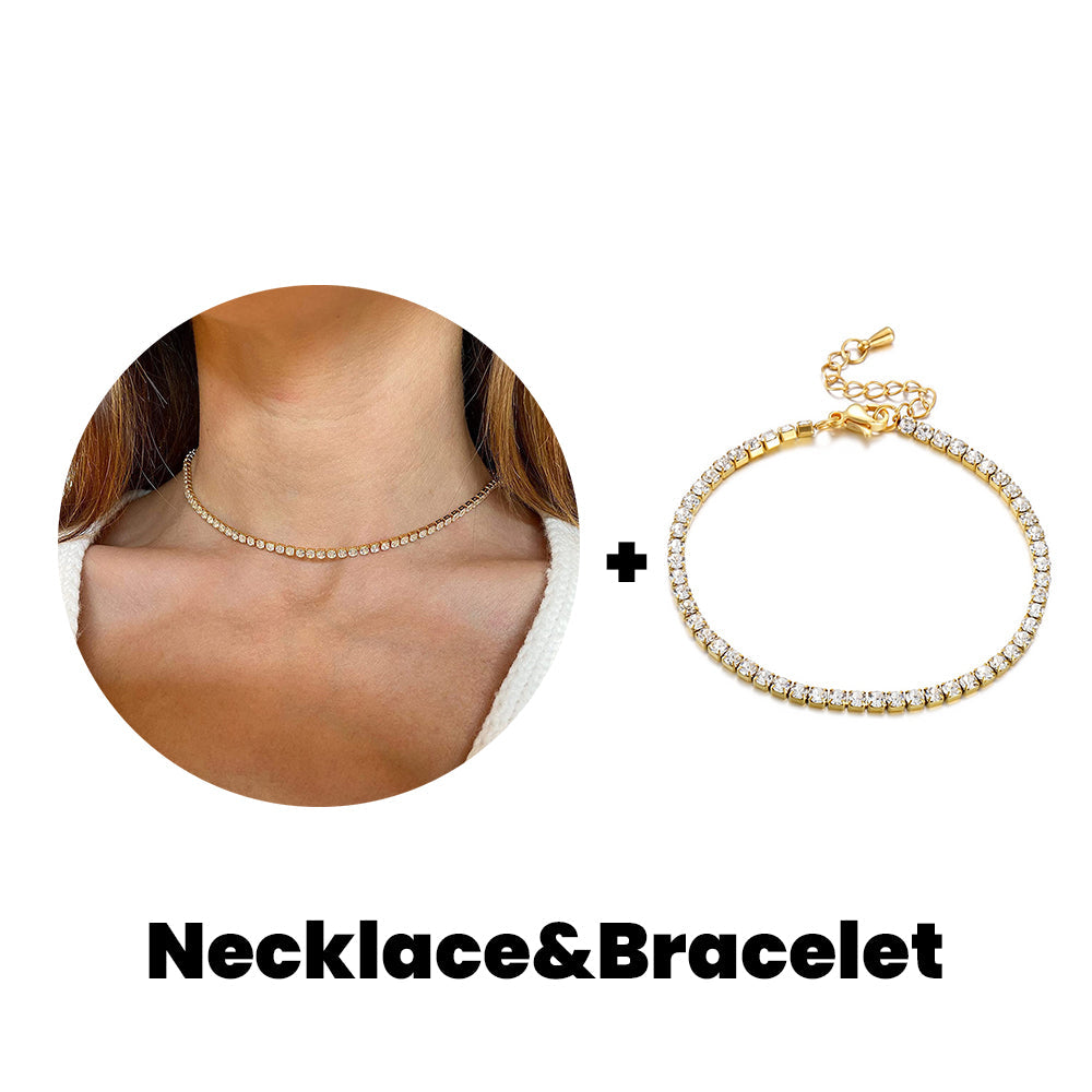 "Crystal' Tennis Necklace + Free Bracelet
