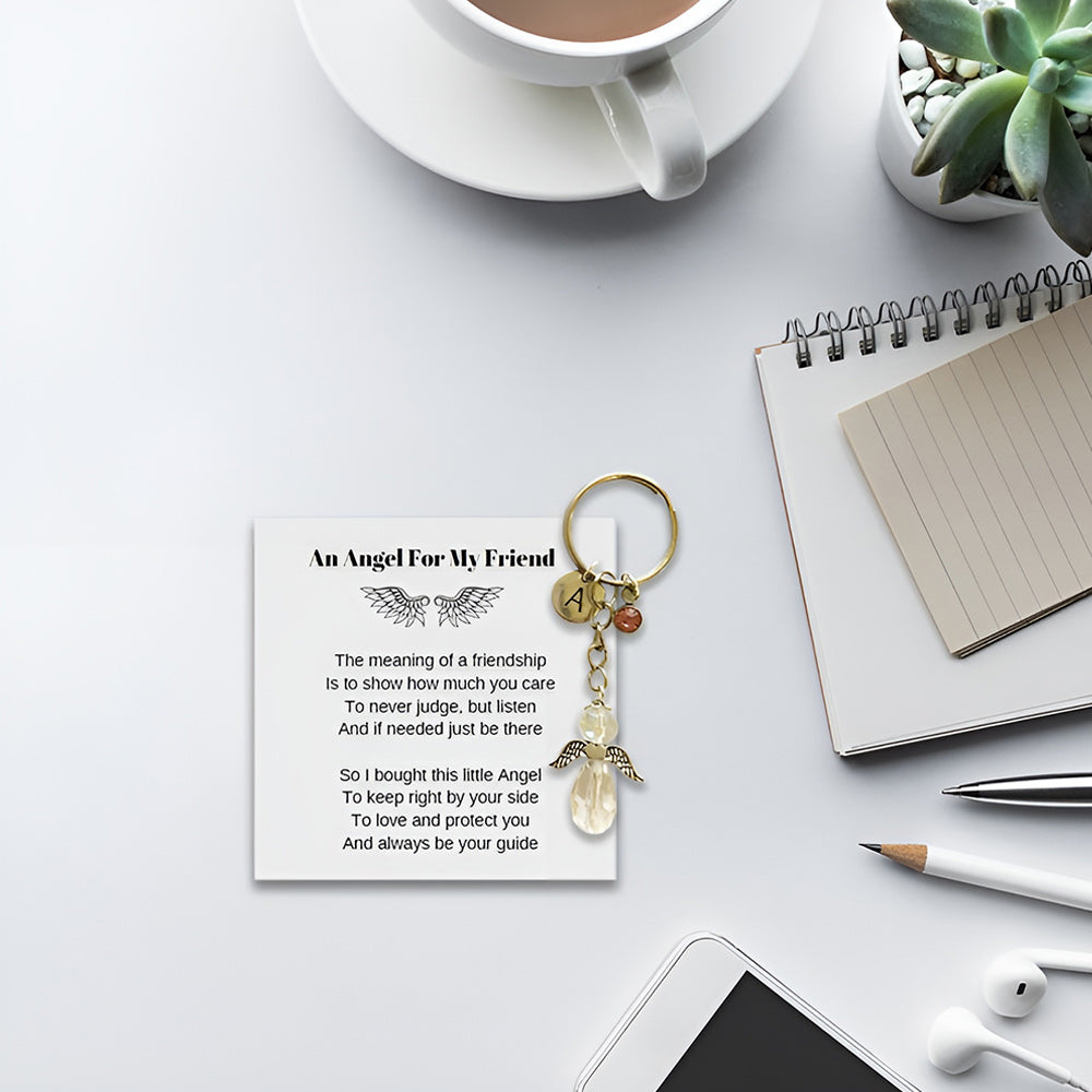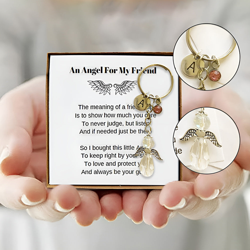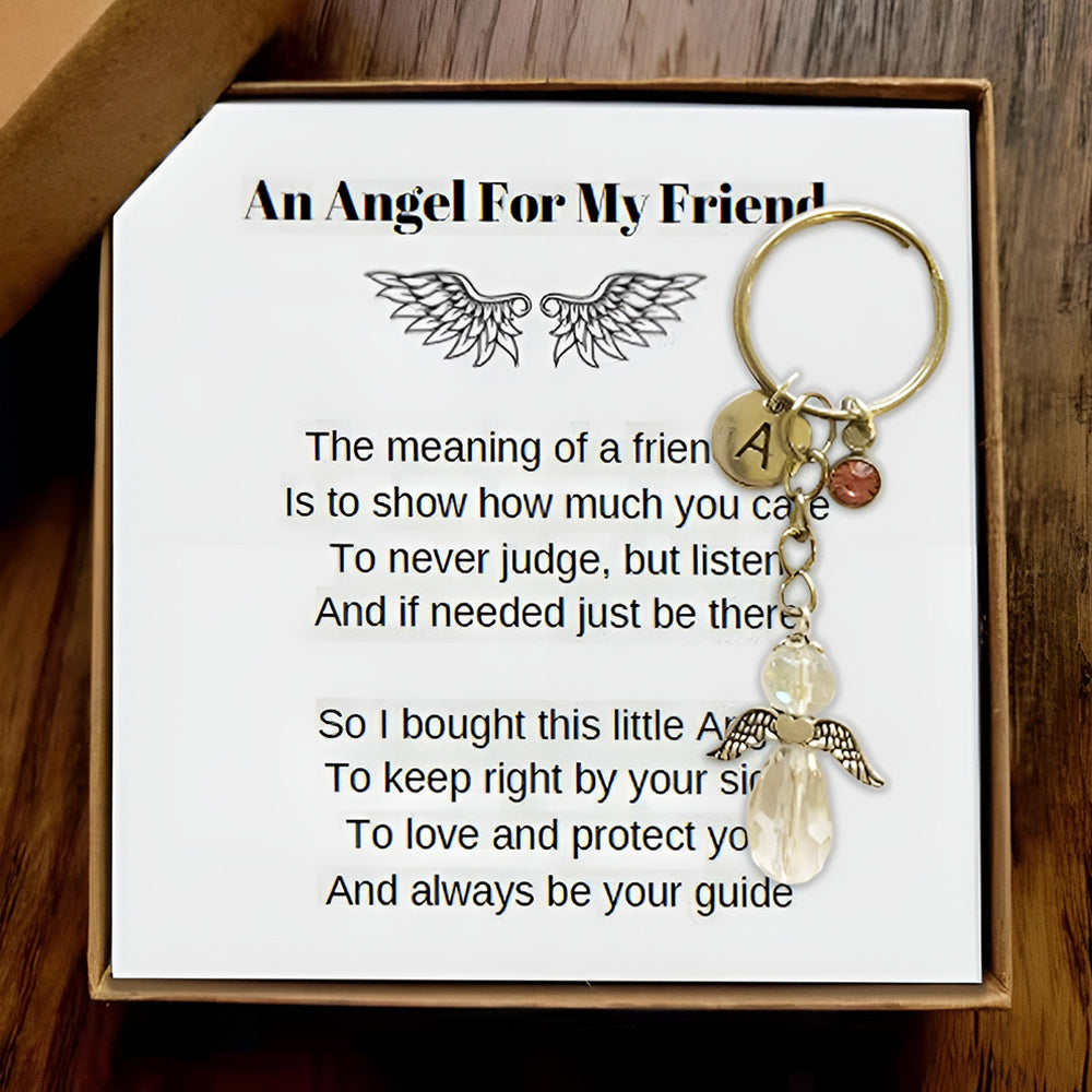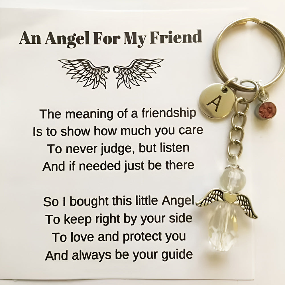- ๐ This keychain comes attached to a card with the saying: The meaning of a friendship is to show how much you care to never judge, but listen and if needed just be there. So I bought this little Angel to keep right by your side to love and protect you and always be your guide.