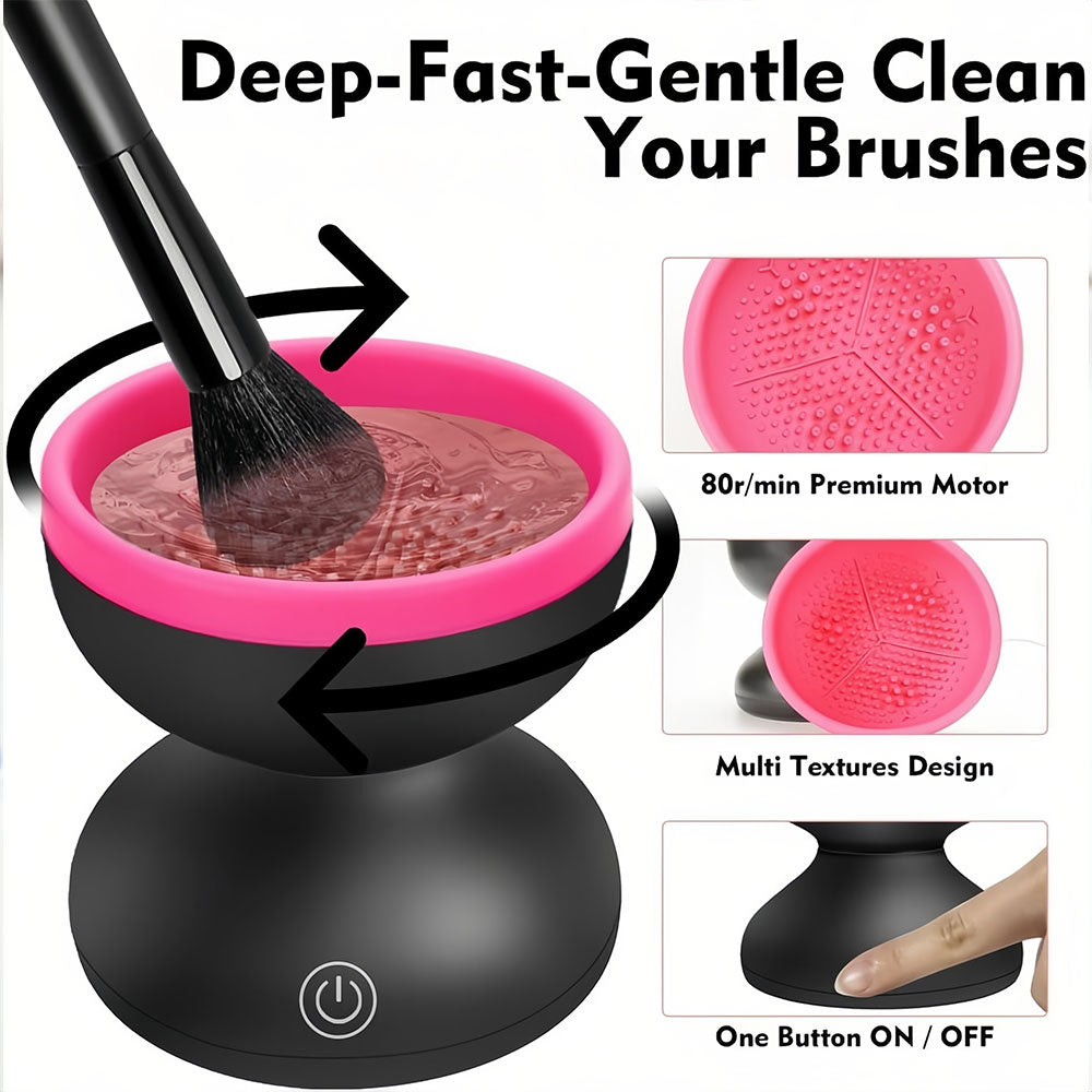 The electric makeup brush cleaner deeply cleans your makeup brushes effortlessly, protecting your precious brushes from damage.