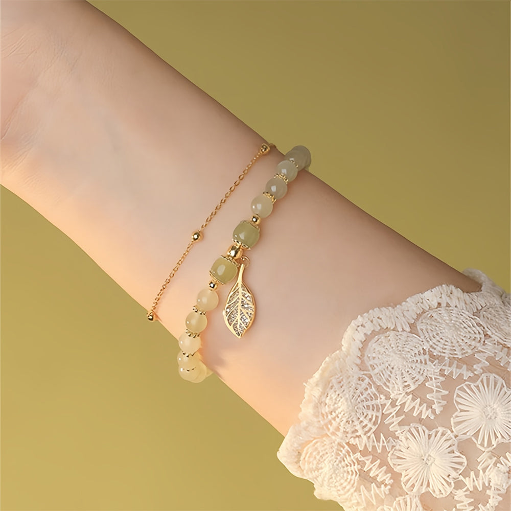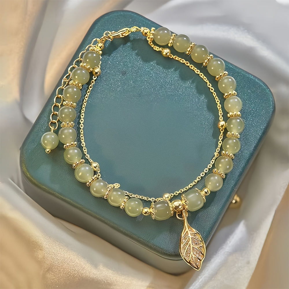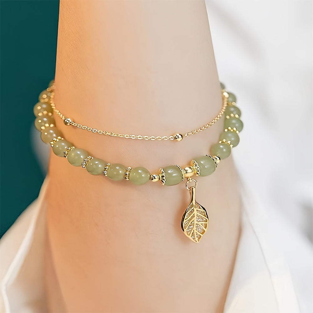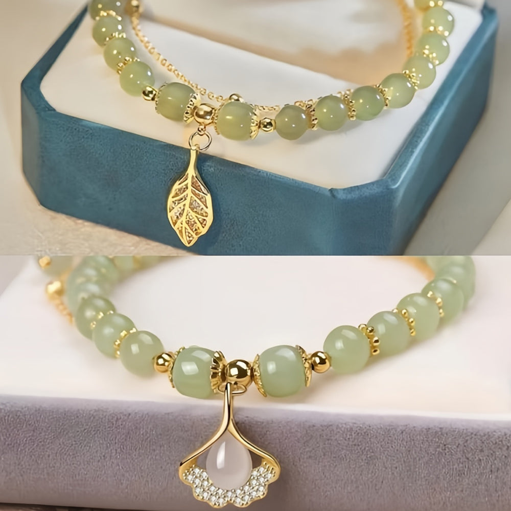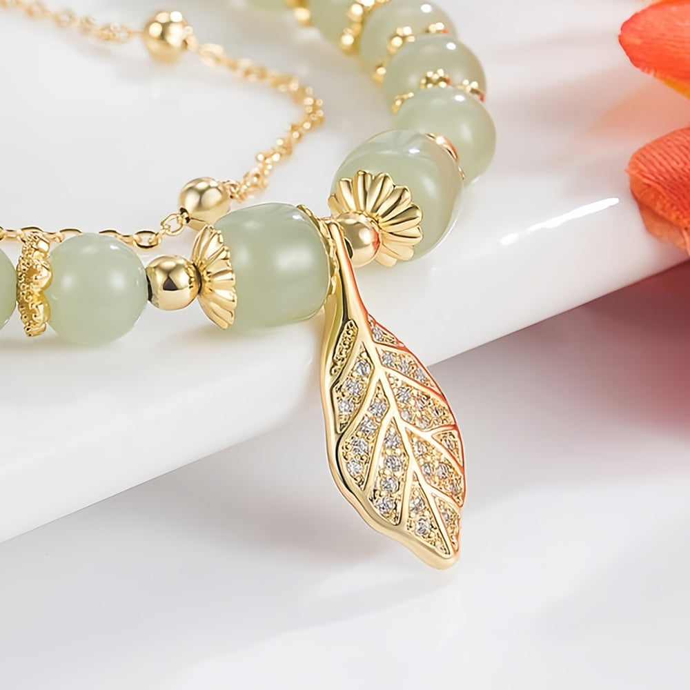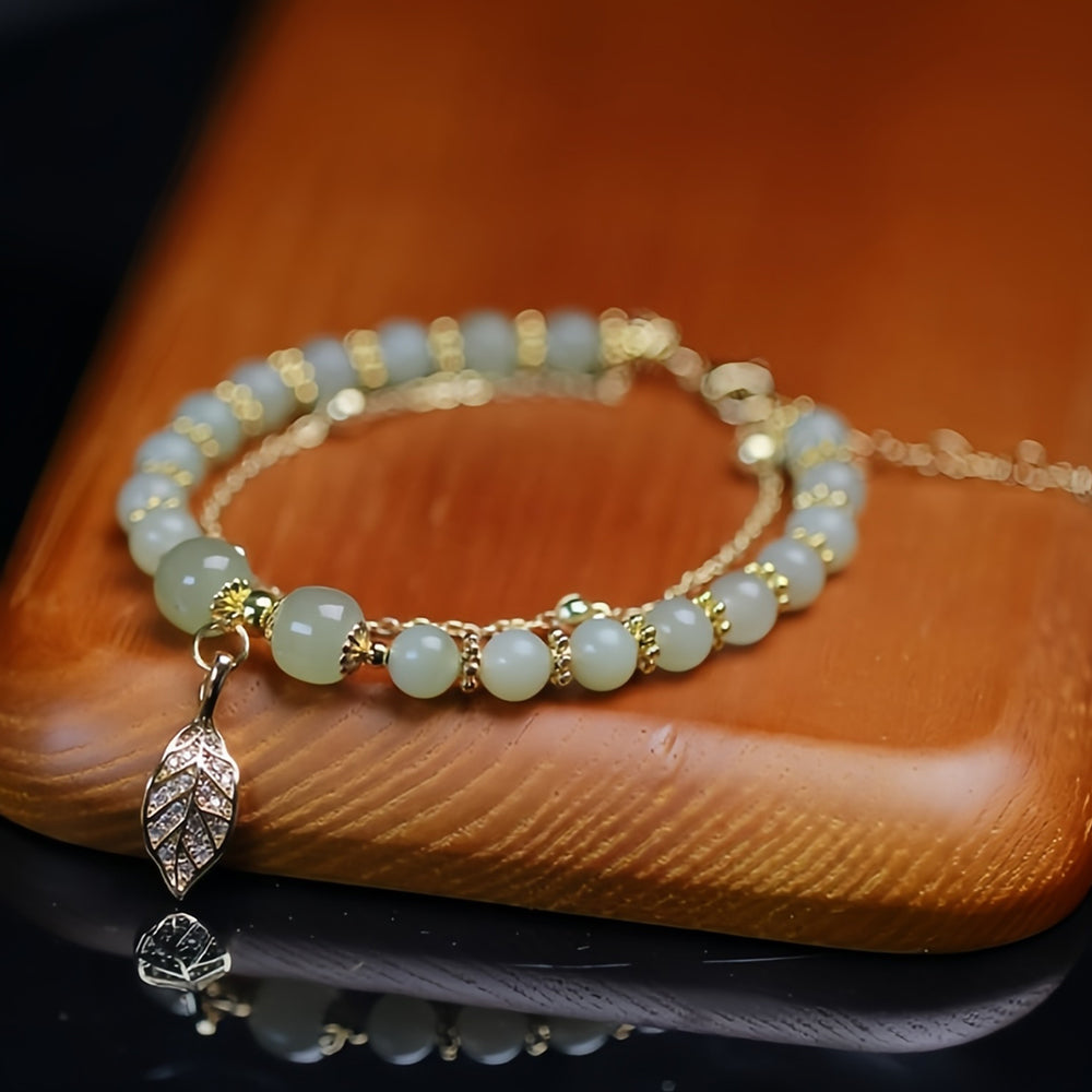 💞 Wotian Jade Lucky Gold Leaf Bangle