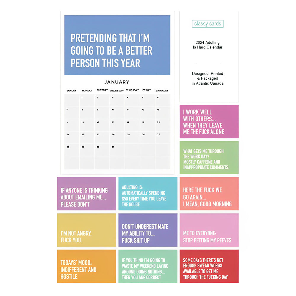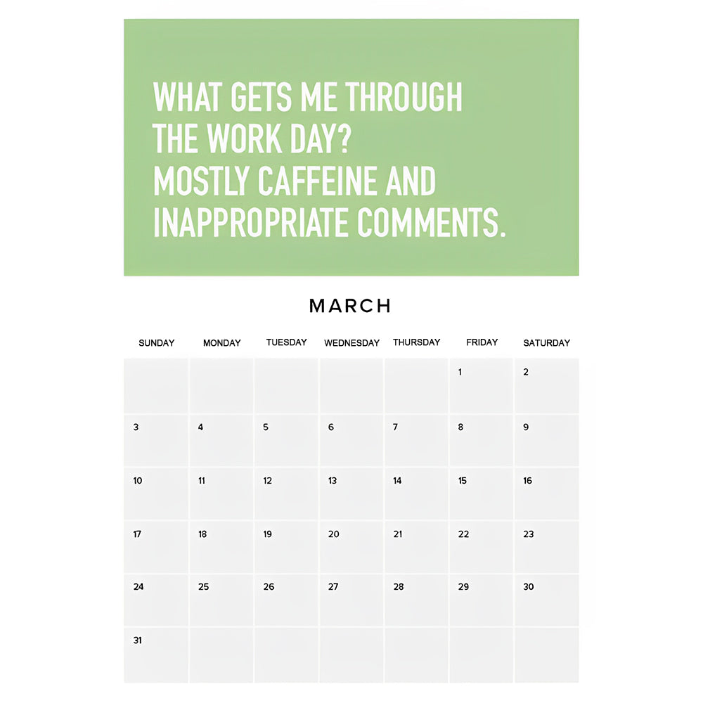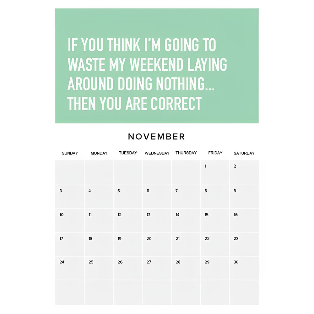 12 Month Calendar filled with hilarious and relatable quotes about being an adult.