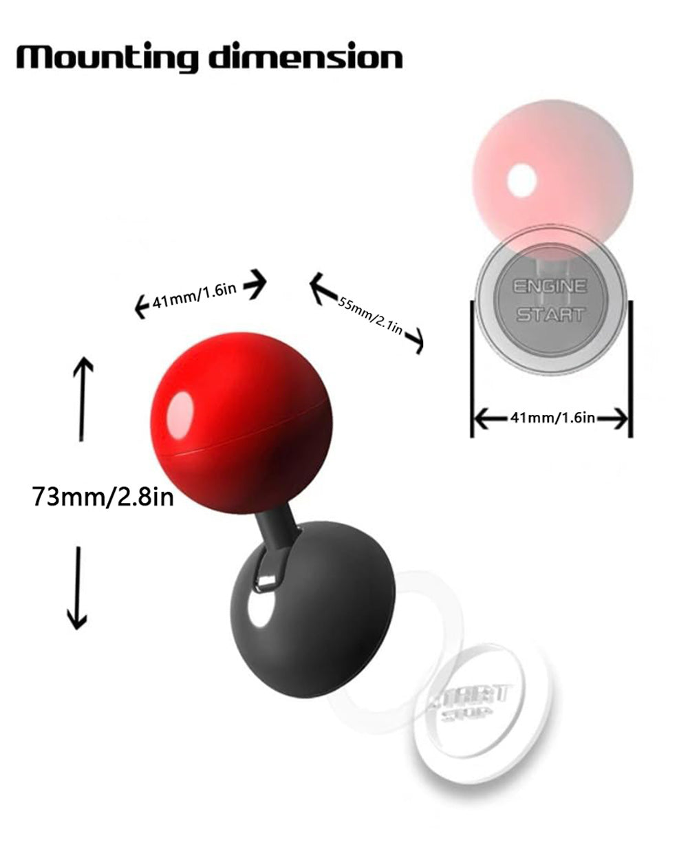 【Universal size】Car engine start and stop button start cover is 73mm/2.87inches long, 55mm/2.17inches thick, 41mm/1.61inches in diameter at the bottom, 12mm/0.47inches in diameter at the bottom of the movable push button connector, the overall weight is about 77 grams.
