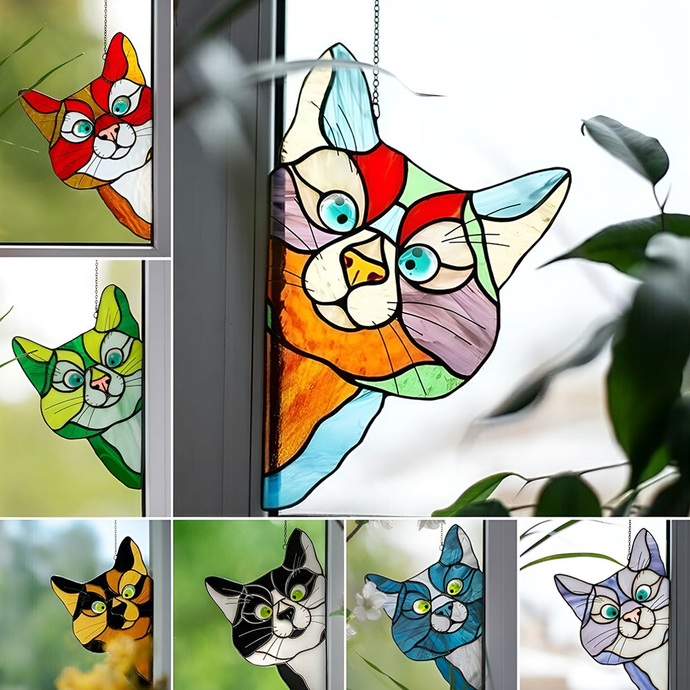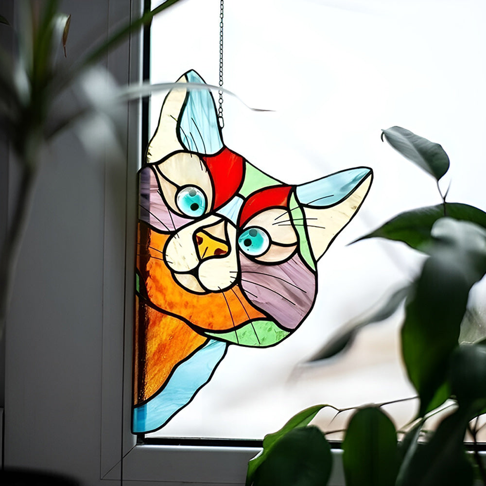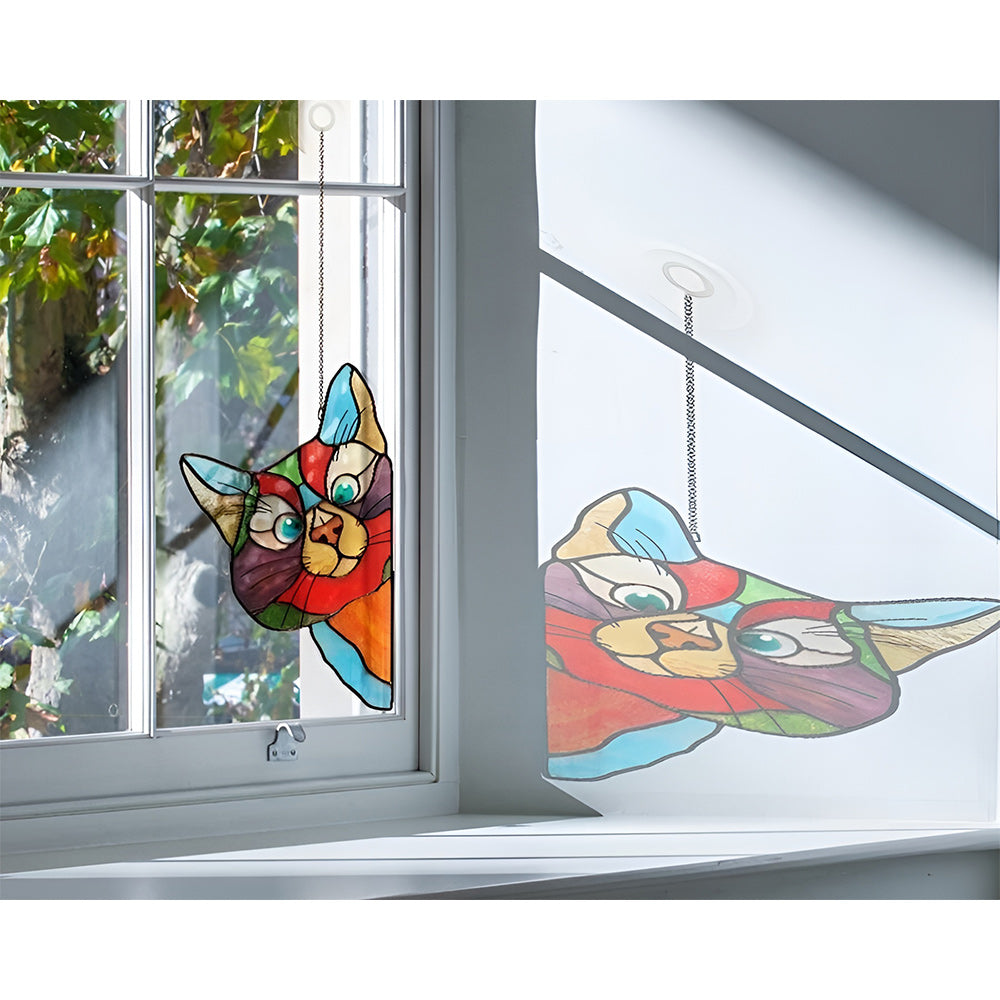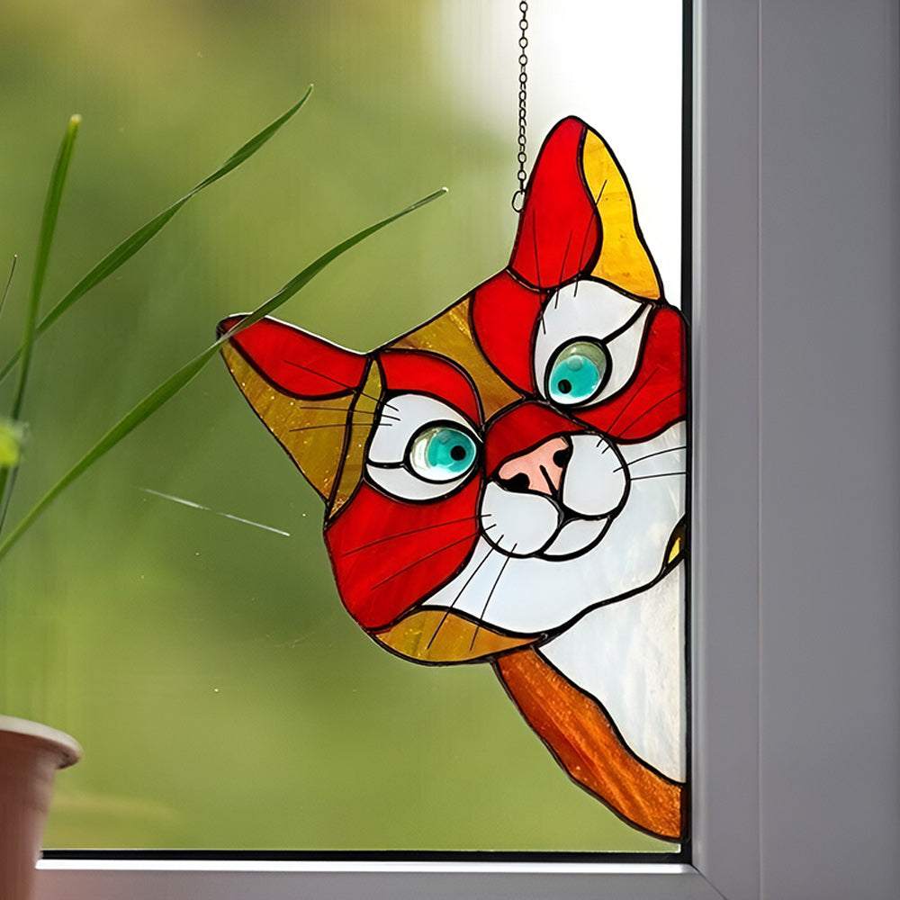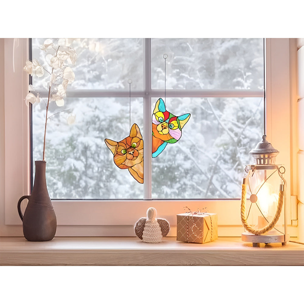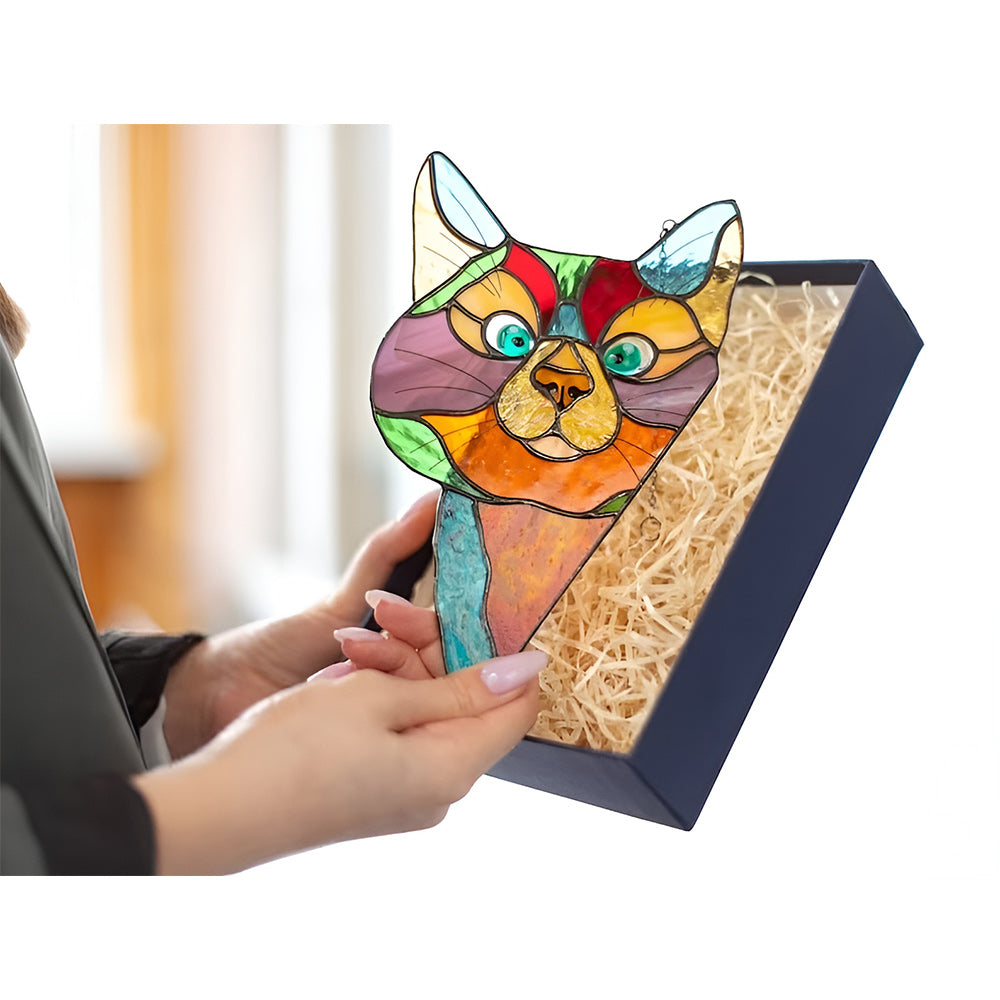 - 1/7 x Handmade Stain Cat Suncatcher For Window