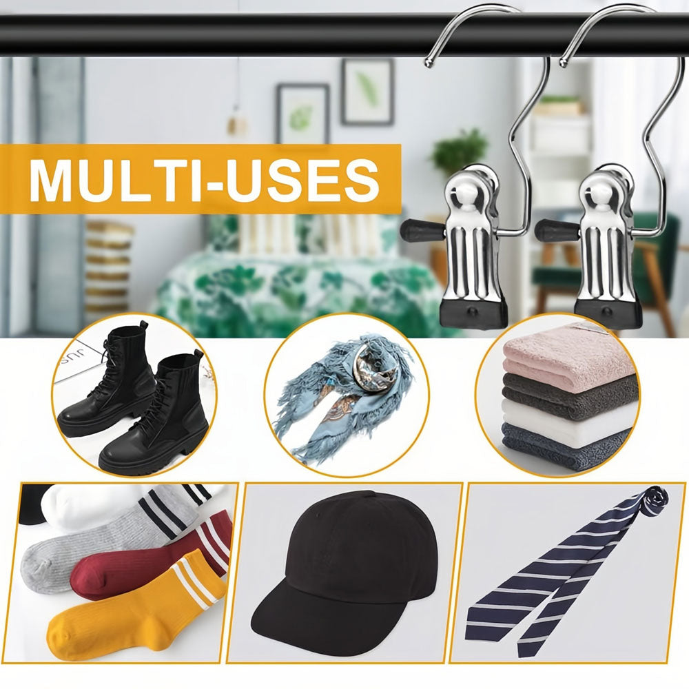 - 【MULTI-FUNCTION HANGER CLOSET】- The pants hangers are not only suitable for your daily household use in your bedroom, laundry room, bathroom, kitchen, etc., but also perfect for travel, business, hotel, RV, camping, and working use. As legging hangers, Our multi-hanger sets for slacks, jeans, skirts, trousers, yoga pants, dress pants more. As hanger clips, Great for hanging tall floppy boots, hats, socks, towels, bags,snacks, etc.