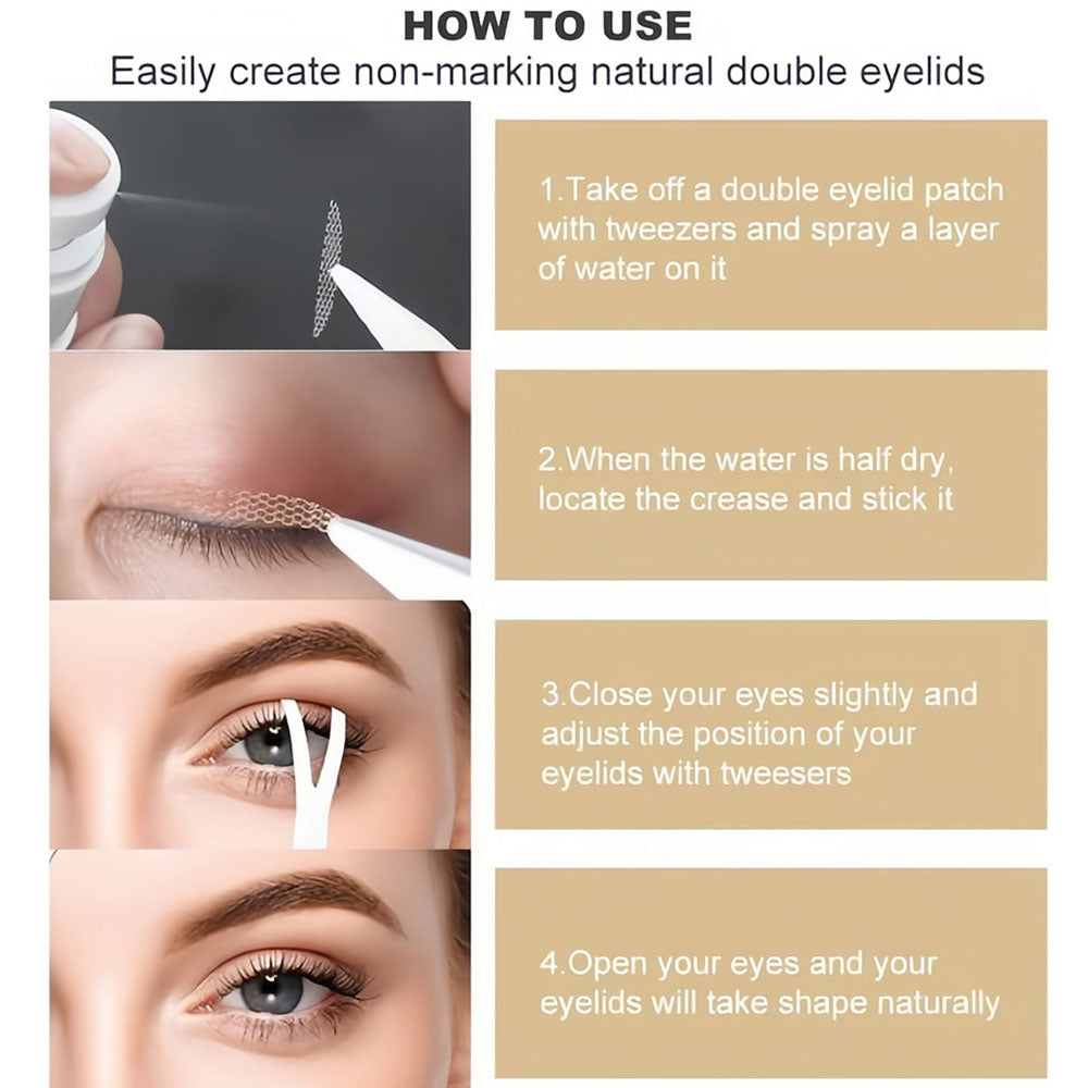 - Water-activated Adhesion- Simply spray water to instantly make them become transparent and durably adhesive. Won’t leave any glue residue like traditional eyelid tapes.