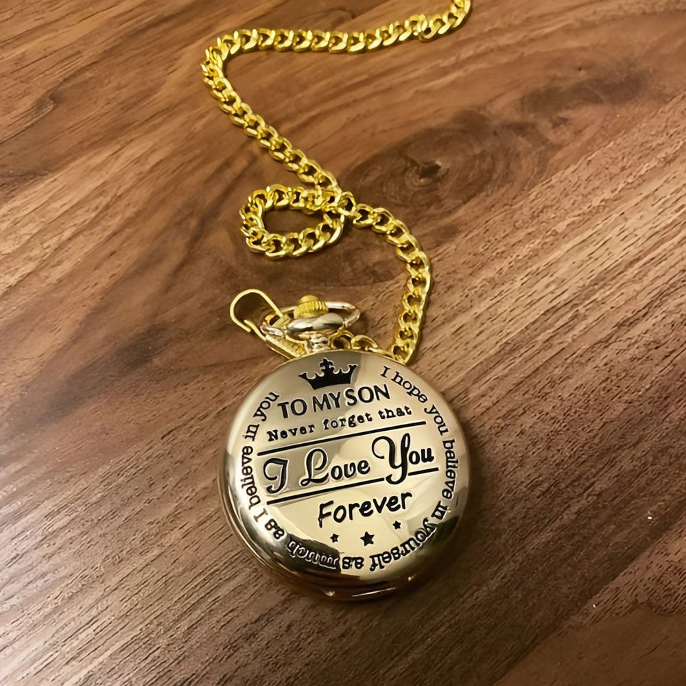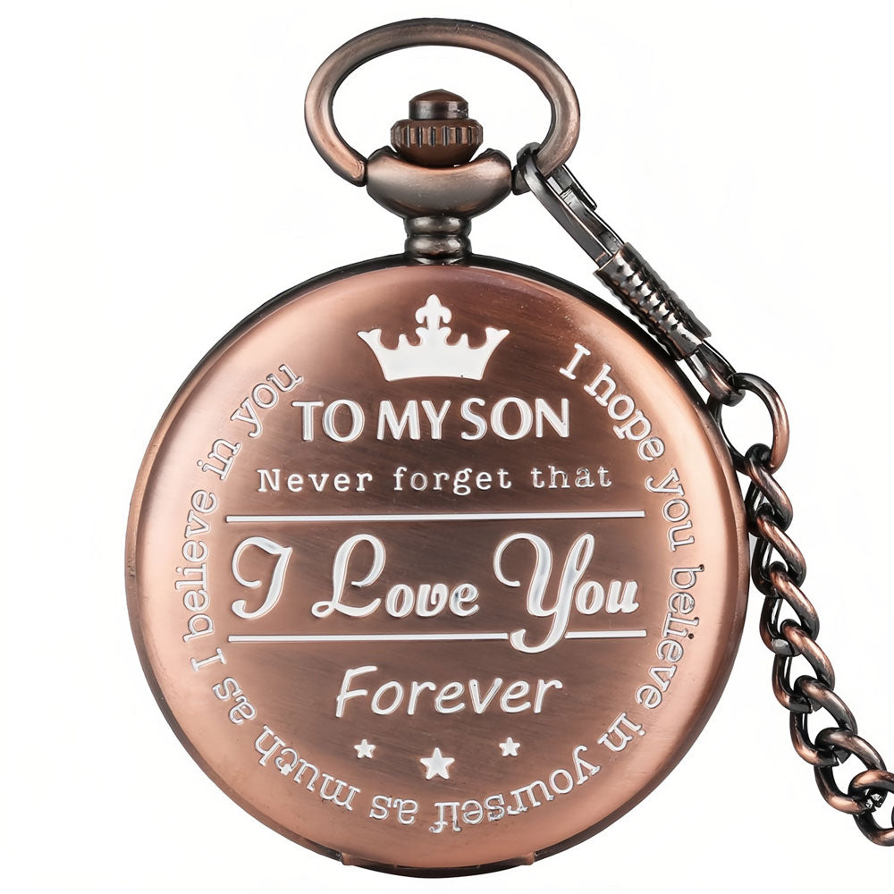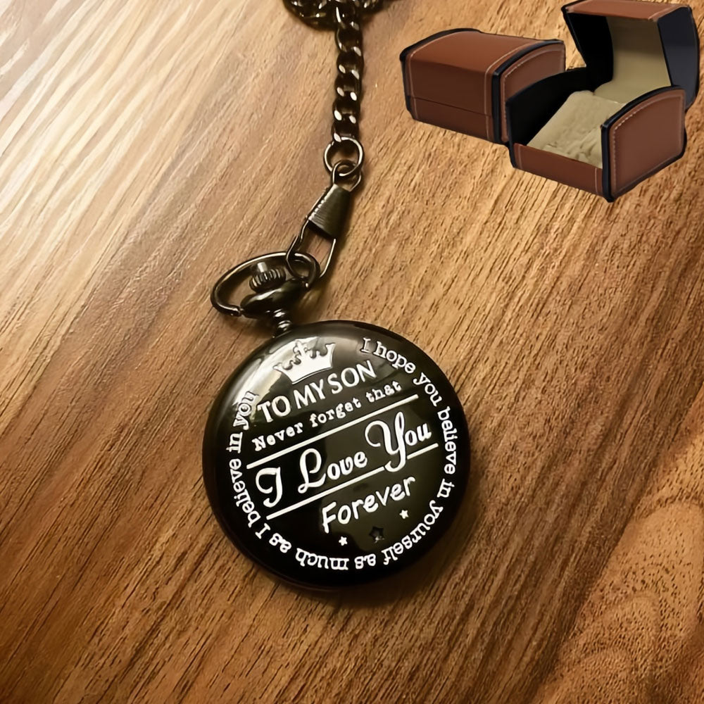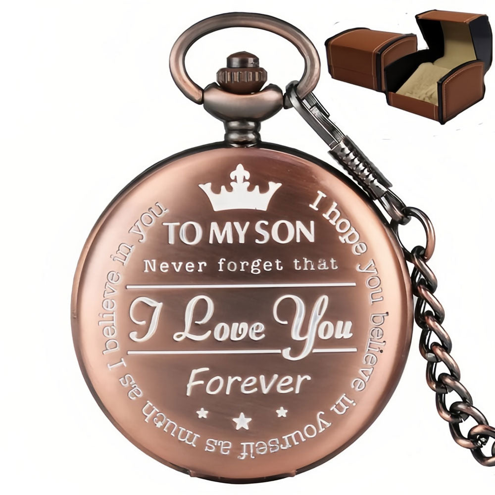 - Remind your son just how much you love him with this beautiful laser engraved pocket watch. This pocket watch is the perfect gift which he will truly appreciate and cherish. He will carry your love with him forever with this thoughtful engraved reminder…