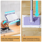The push-pull handle design eliminates the need for direct hand contact while changing mop cloths. Simply press the handle down to open the base and automatically grip or release the cloth, avoiding dirty hands during the process.