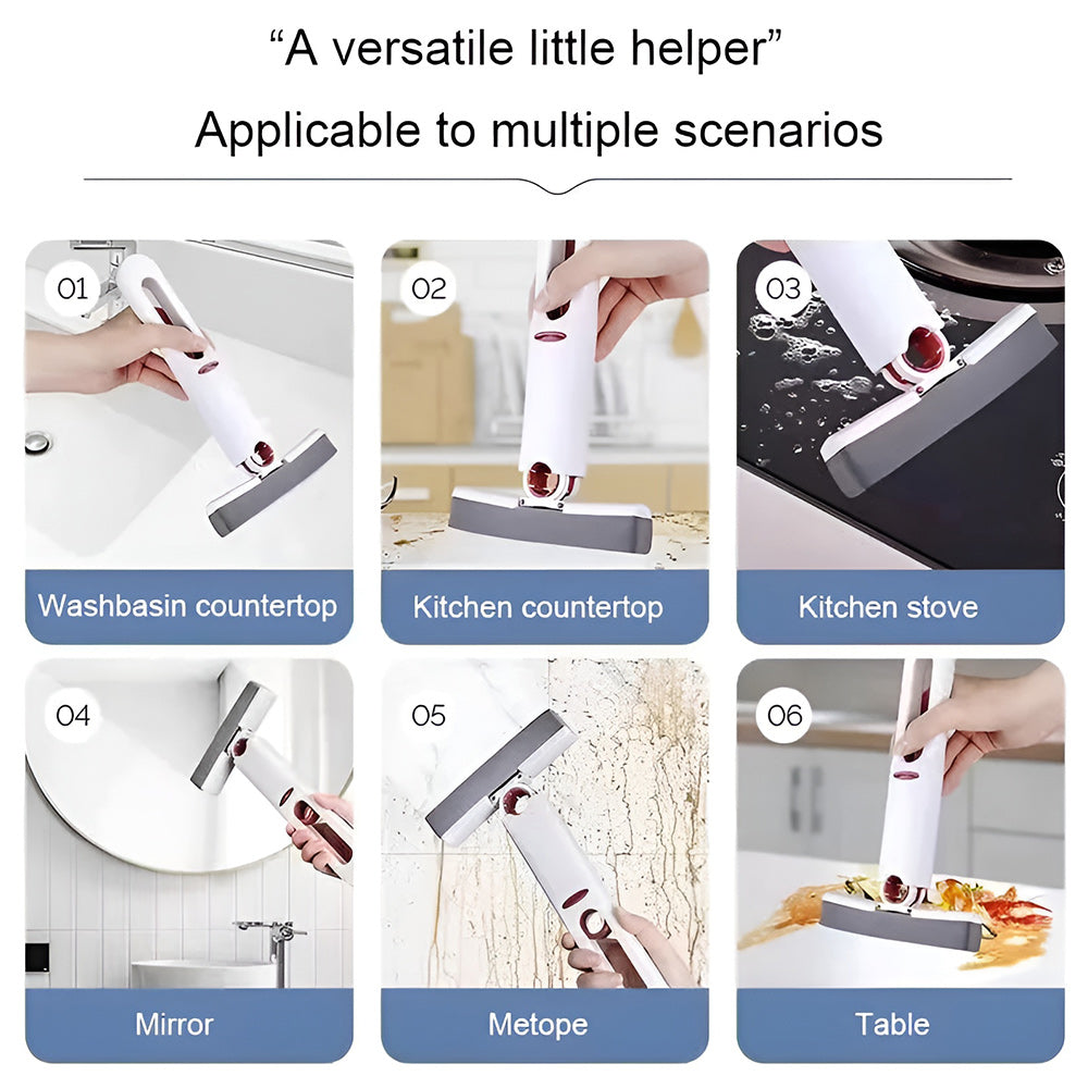 The mini mop has a push-pull mechanism that allows you to effortlessly wring it out and leave no mess behind. It's like magic, but for cleaning!