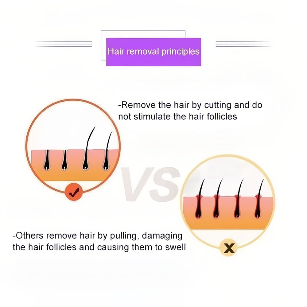 - 🍑 Fast and pain-free: Shave any-part of your leg without itchy burns, nicks or skin irritation.Removing hair on the skin is easy and painless. Keeping you're skin sexy and safe throughout your summer!