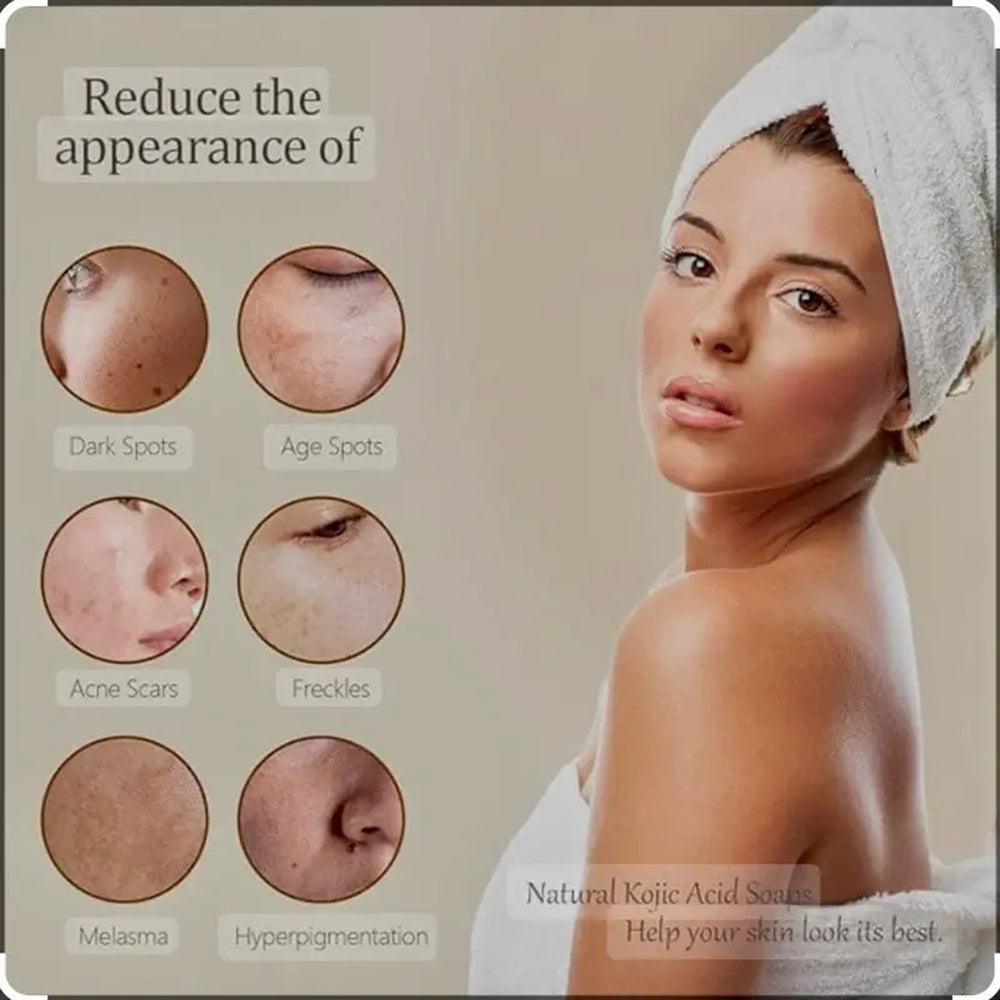 our turmeric and kojic acid bar may cleanses your skin may improve dark spots, may reduce hyperpigmentation, may reduce face and body acne.