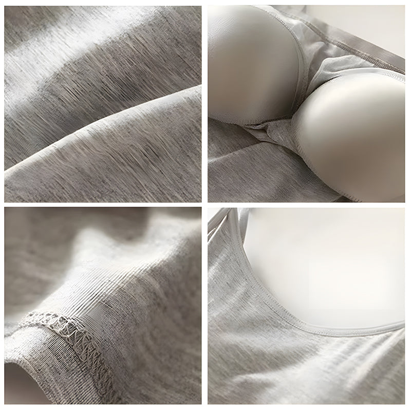 Our Built-in bra tank top has elastic band which support your chest more better and safe. No need to go home every day after work to pull the normal bra things off.