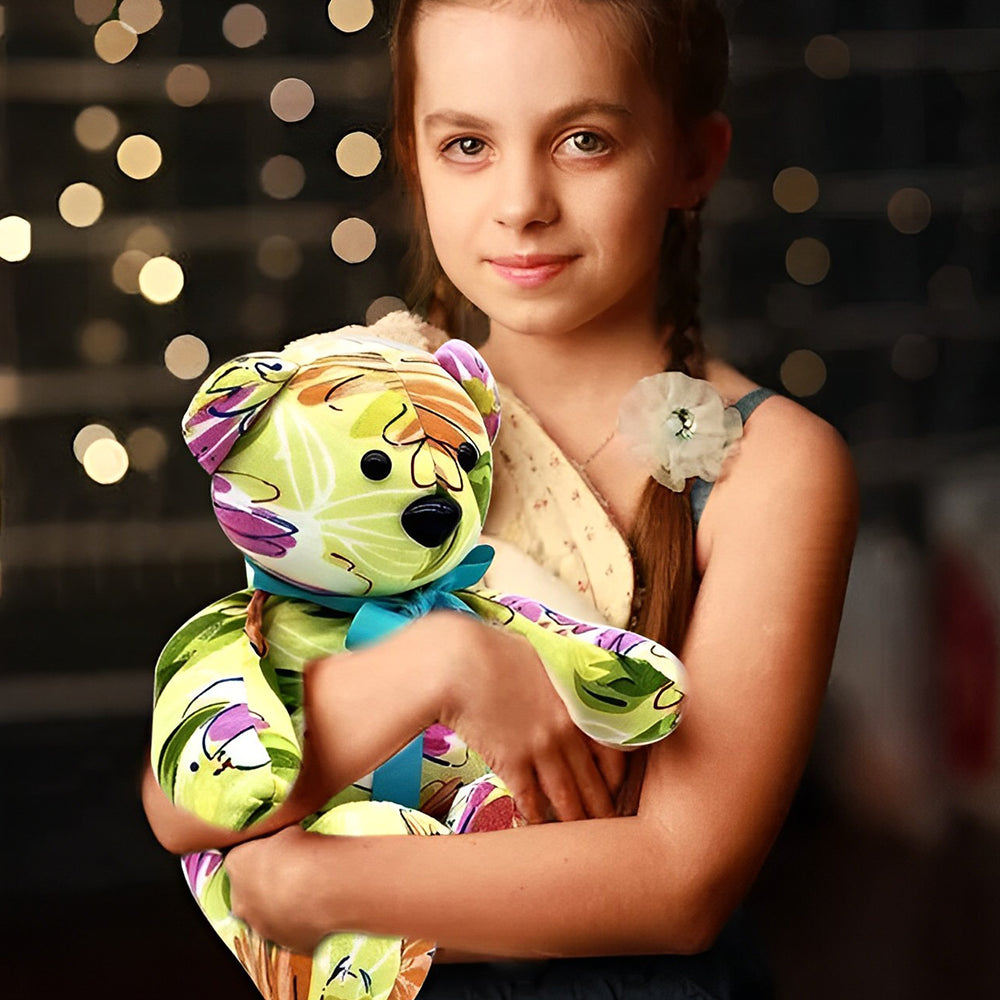 Memory Bear are made from the clothing of a deceased loved one to help keep their memory alive. It can also be made from children's clothes to preserve their childhood memories.