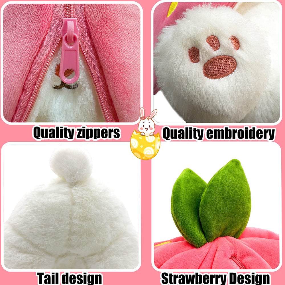 - 🐇Vacuum Packing - 🎈Our super soft strawberry bunny and carrot rabbit plush pillows use vacuum packaging, it will automatically recover after disassembly. If you put the cute stuffed animal pillows in the sun or in the dryer, it will recover better.🎁