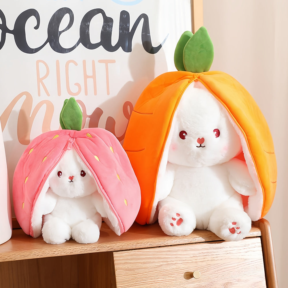 🍓Strawberry Bunny Transformed into Little Rabbit🎀 Fruit Doll Plush Toy🐰