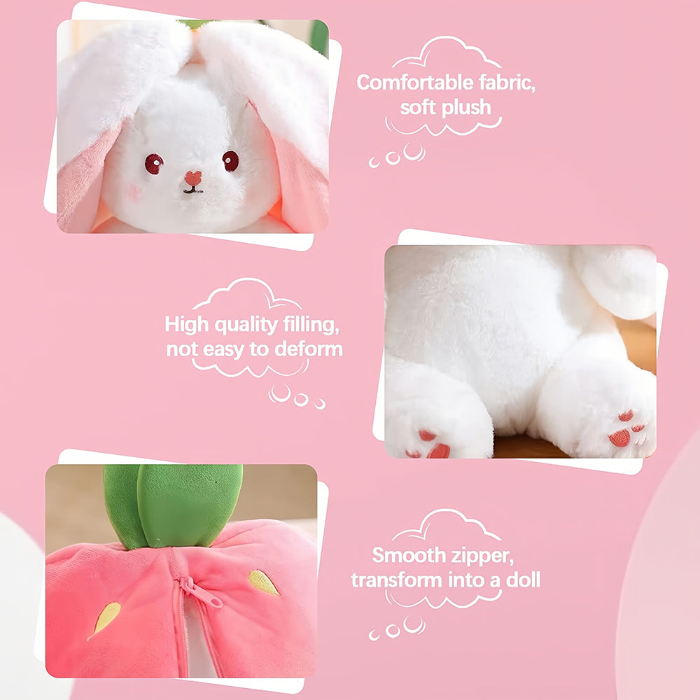 - 🐇Unique Plush Shape – ✨The unique appearance of the design can be a cute strawberry, carrot, or a cute rabbit. Pull on the rabbit ears and it becomes a cute strawberry or carrot, pull off the ears and it is a cute little rabbit. This makes it the equivalent of having two cute plush toys.🪐