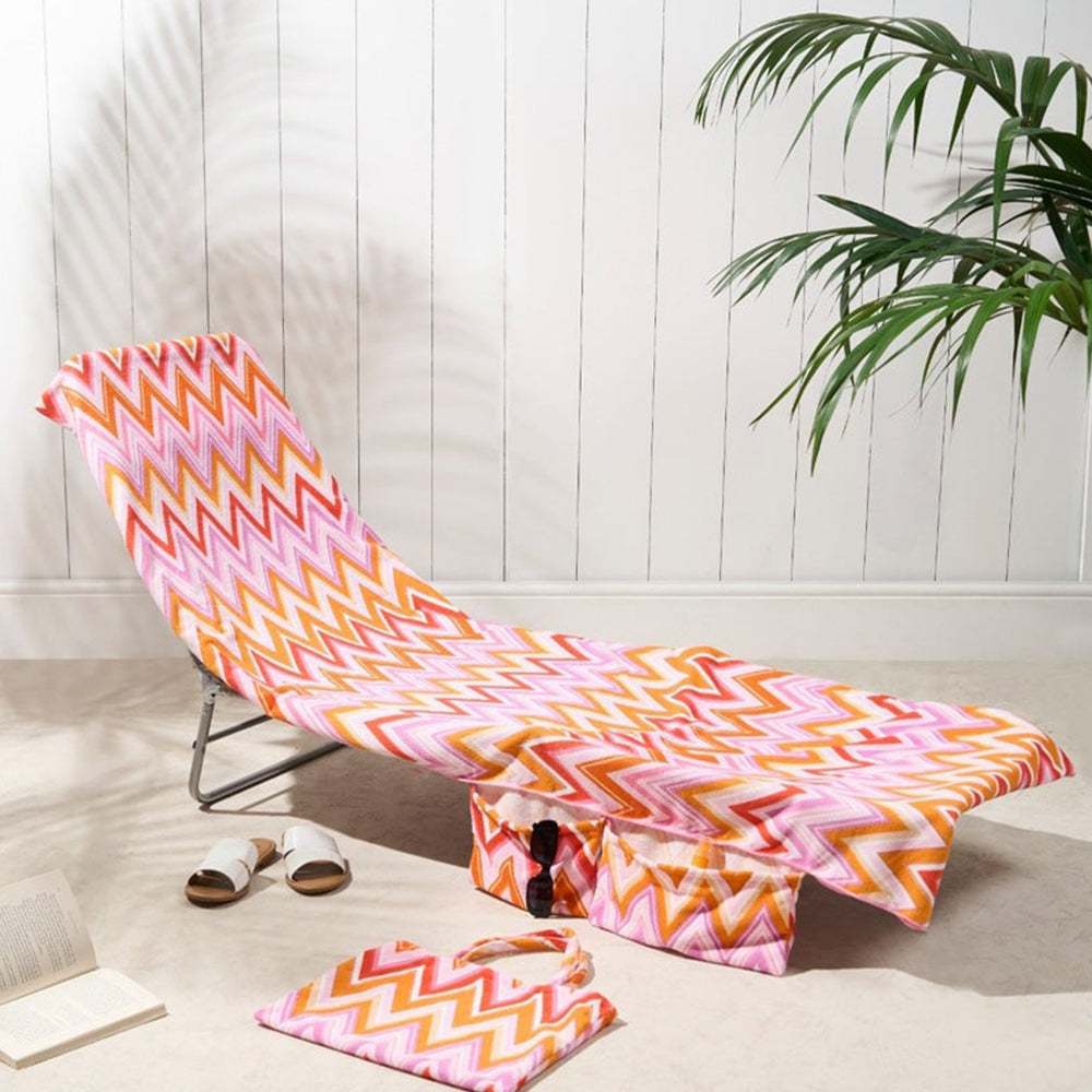 - 👜Foldable & Lightweight Chaise Cushion Cover Beach / Pool Towel: It serves the double duty of covering the chair and drying off after swimming/surfing. It can also be used for wiping the body after exercise, covering the body, lying on the beach, and so on. It can be folded into a small bag or stored as a shoulder carry bag, making it easy to carry when going out.