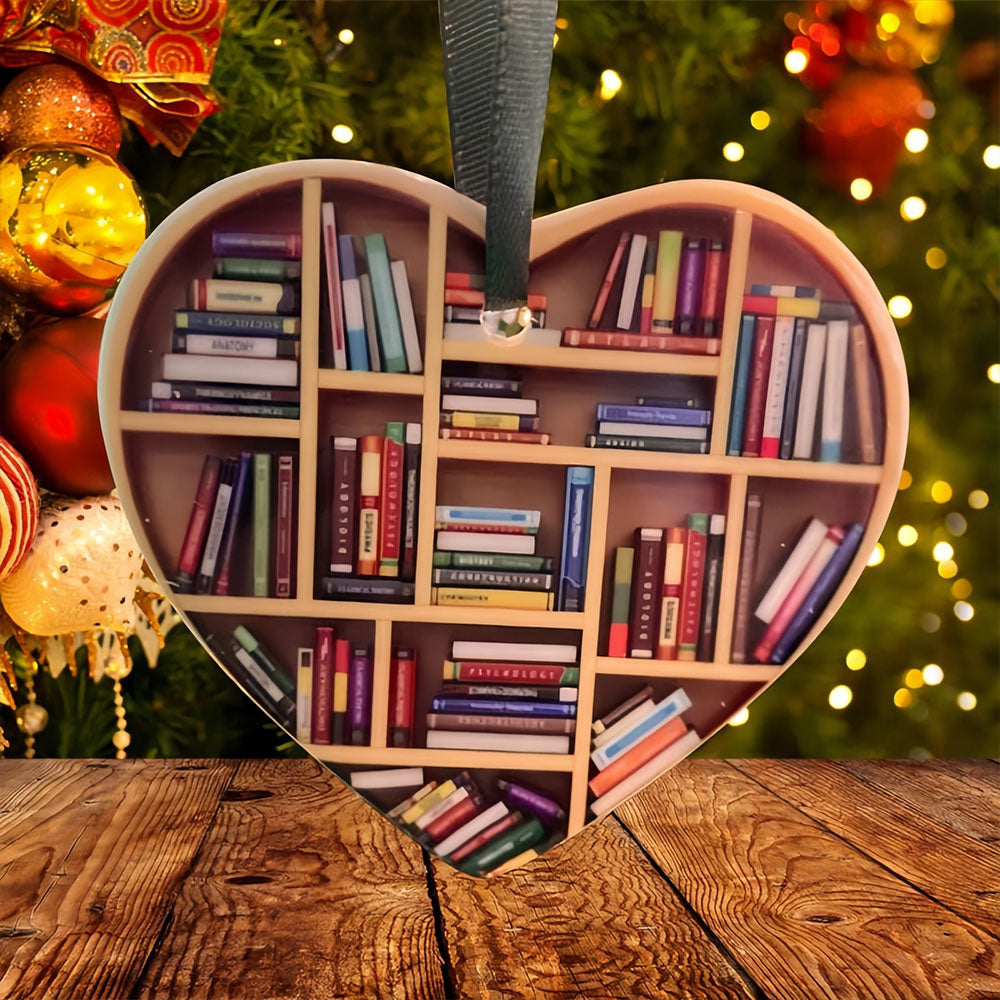 - 2D Ceramic Ornament Book Lovers Heart Ornament Gift for Her