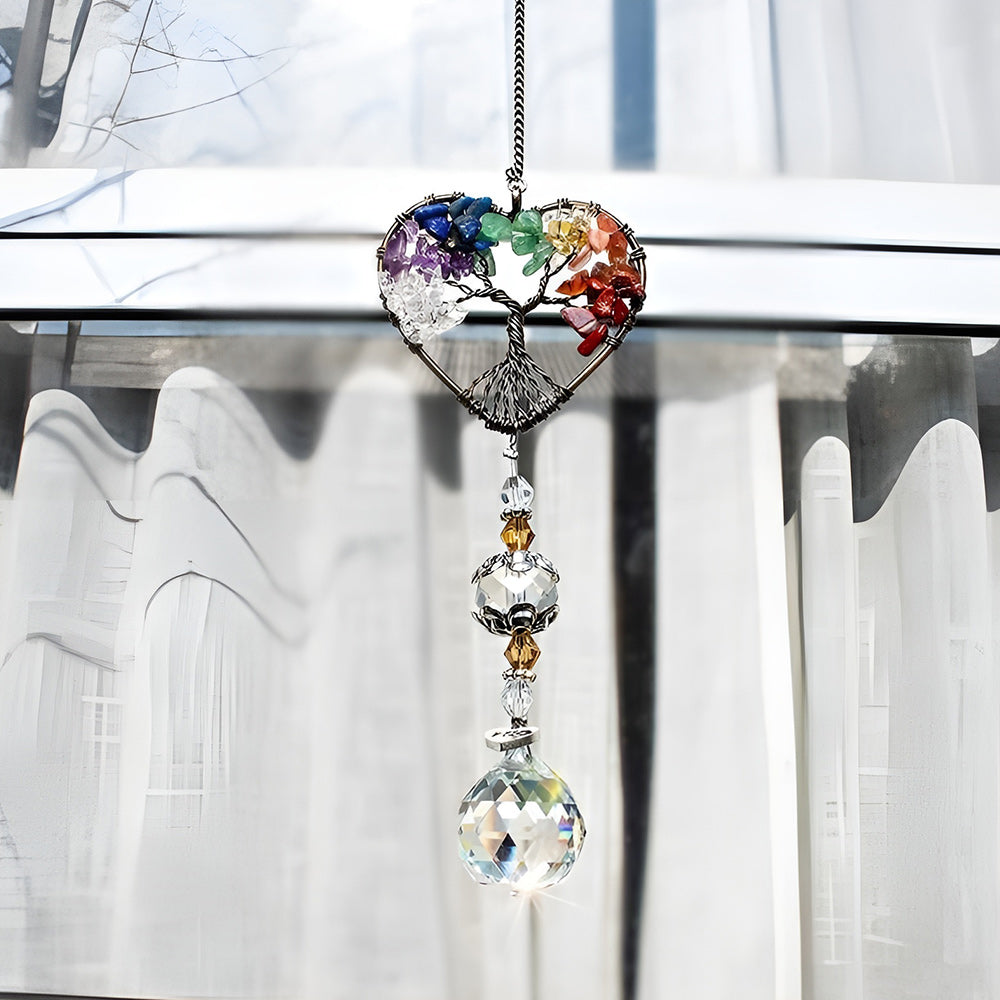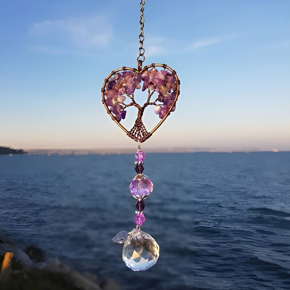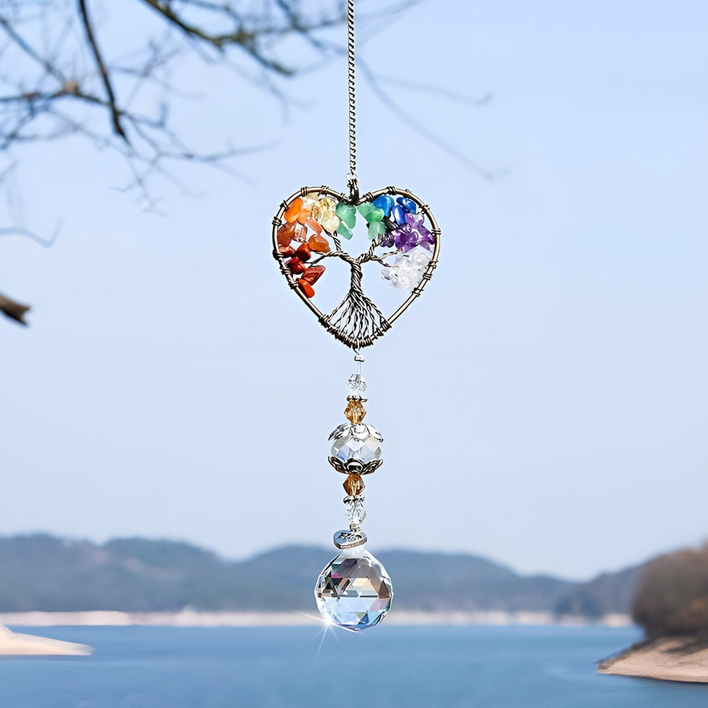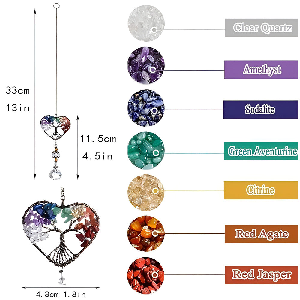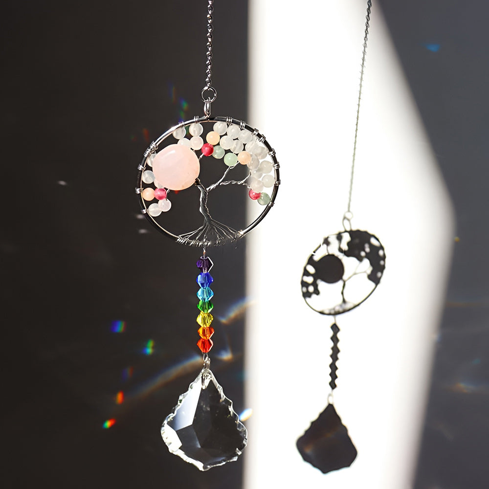- Crystal Wind Chime Tree Of Life Suncatcher is made from metal and K9 crystals which create gorgeous rainbow lights when they are exposed to sunlight!