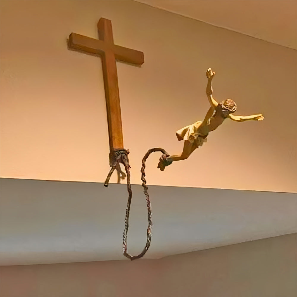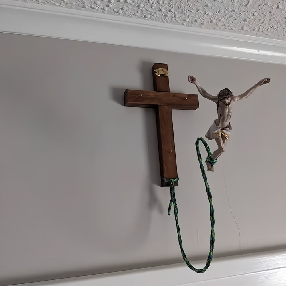 - Ideal gift - It is a good idea to give the wall cross decoration with bungee jumping Jesus to family members and friends for Christmas, New Year, Easter or housewarming.
