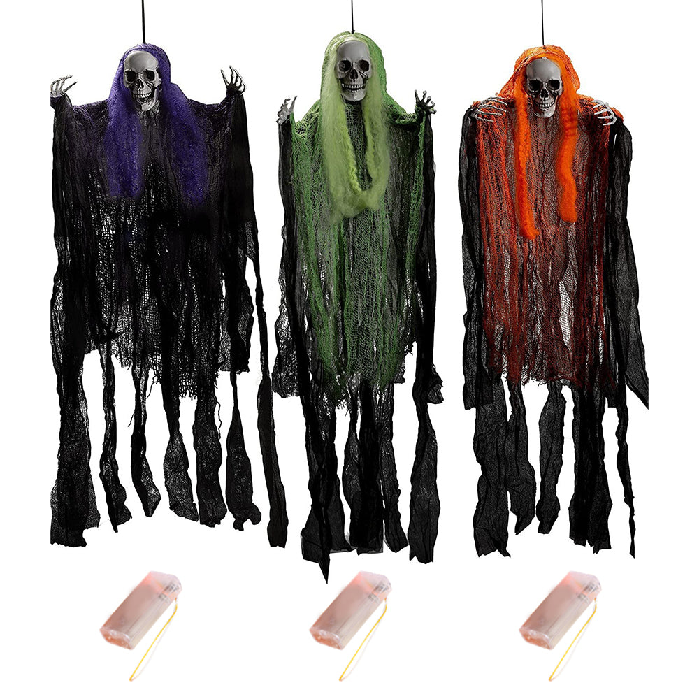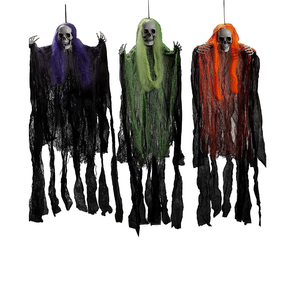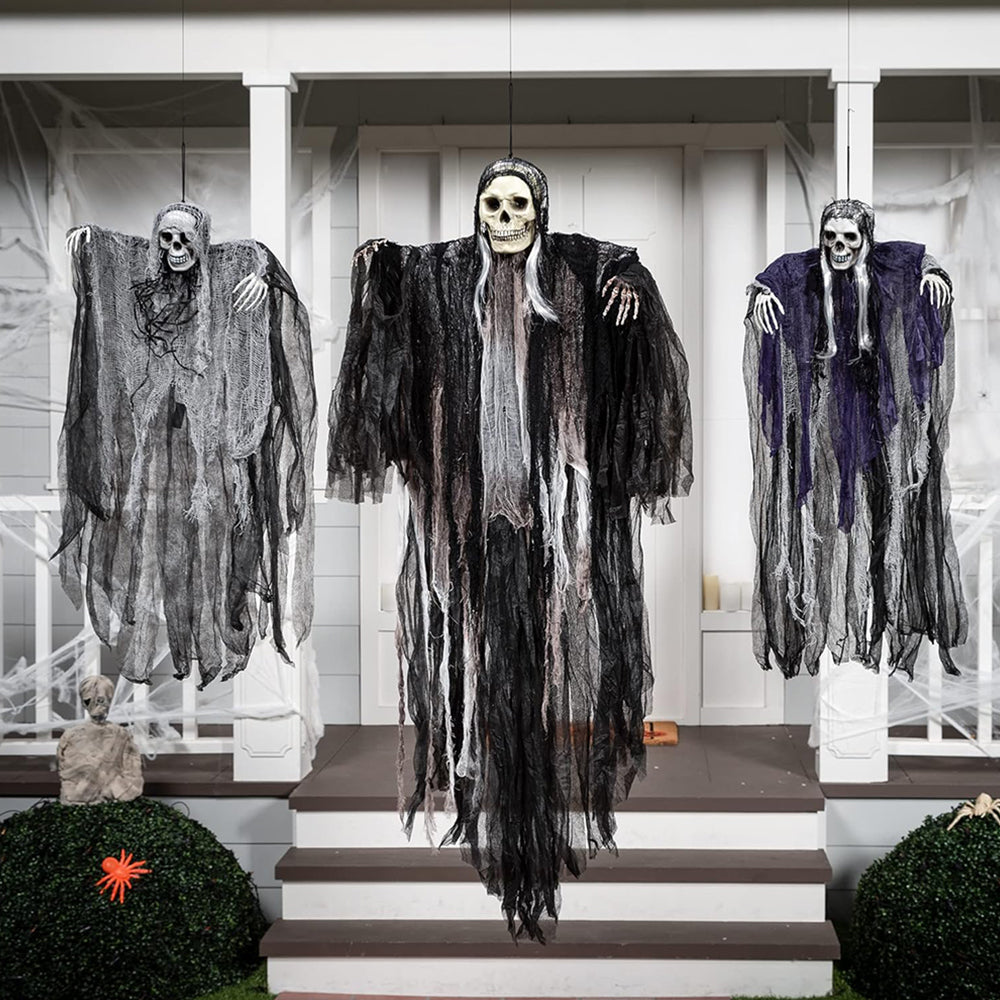 - GREAT VALUE SET: One or three scary skeleton hanging grim reapers with different dress and size helps you create creepy and scary atmosphere for any Halloween events.