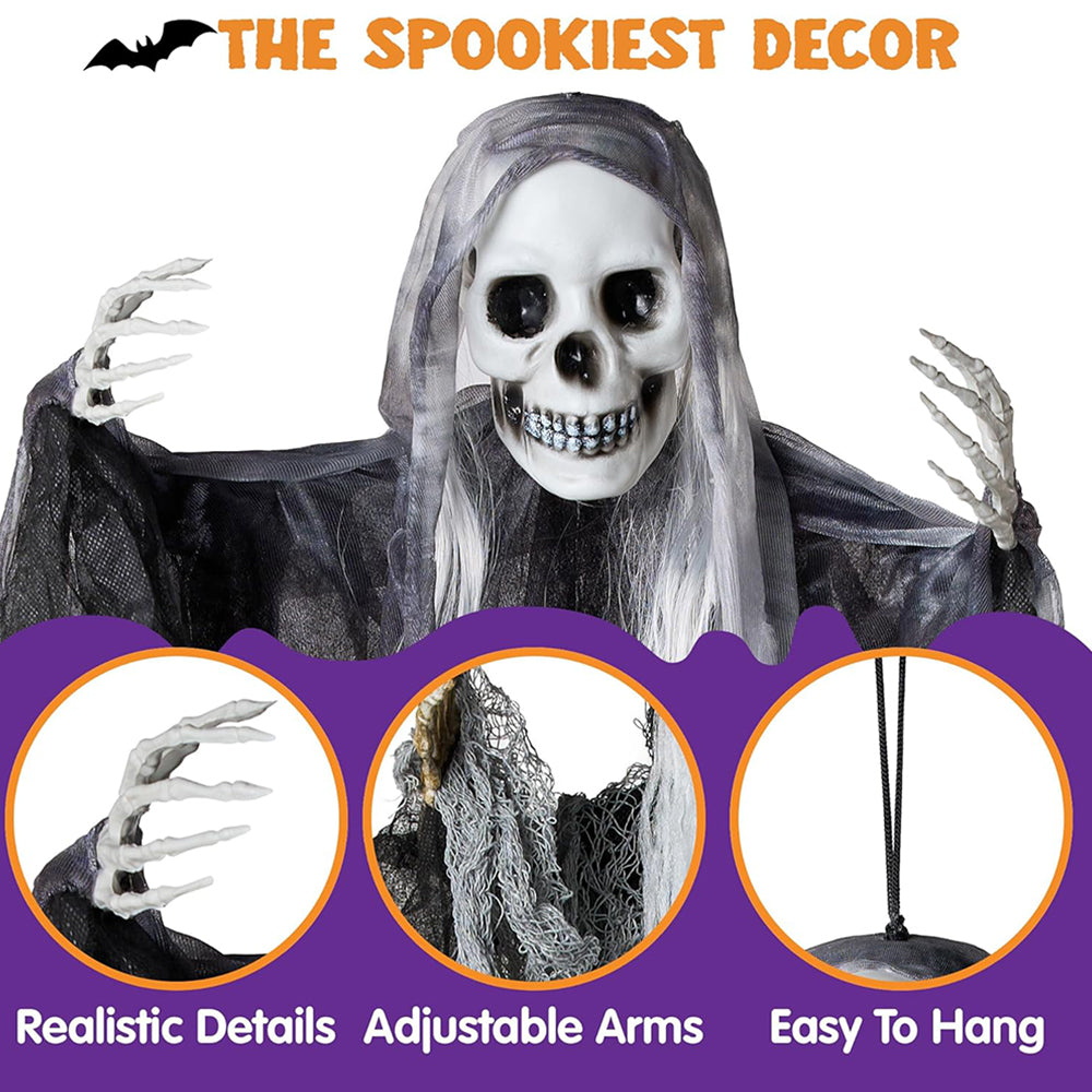 - ADJUSTABLE ARMS: Bring surprise and delight to trick-or-treaters with our detailed reapers, which appear to be floating in the air and ready to fly to the guests, making it the perfect addition to your Halloween decorations.