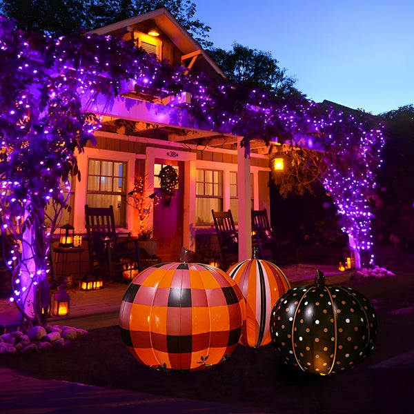 ✨Easy Operation: These giant Pumpkins ball ornaments feature easy to use. Blow up the ball with a pump and use a key handle (included) to unscrew the light cover. Put in the LED light and it start to work. Simple.