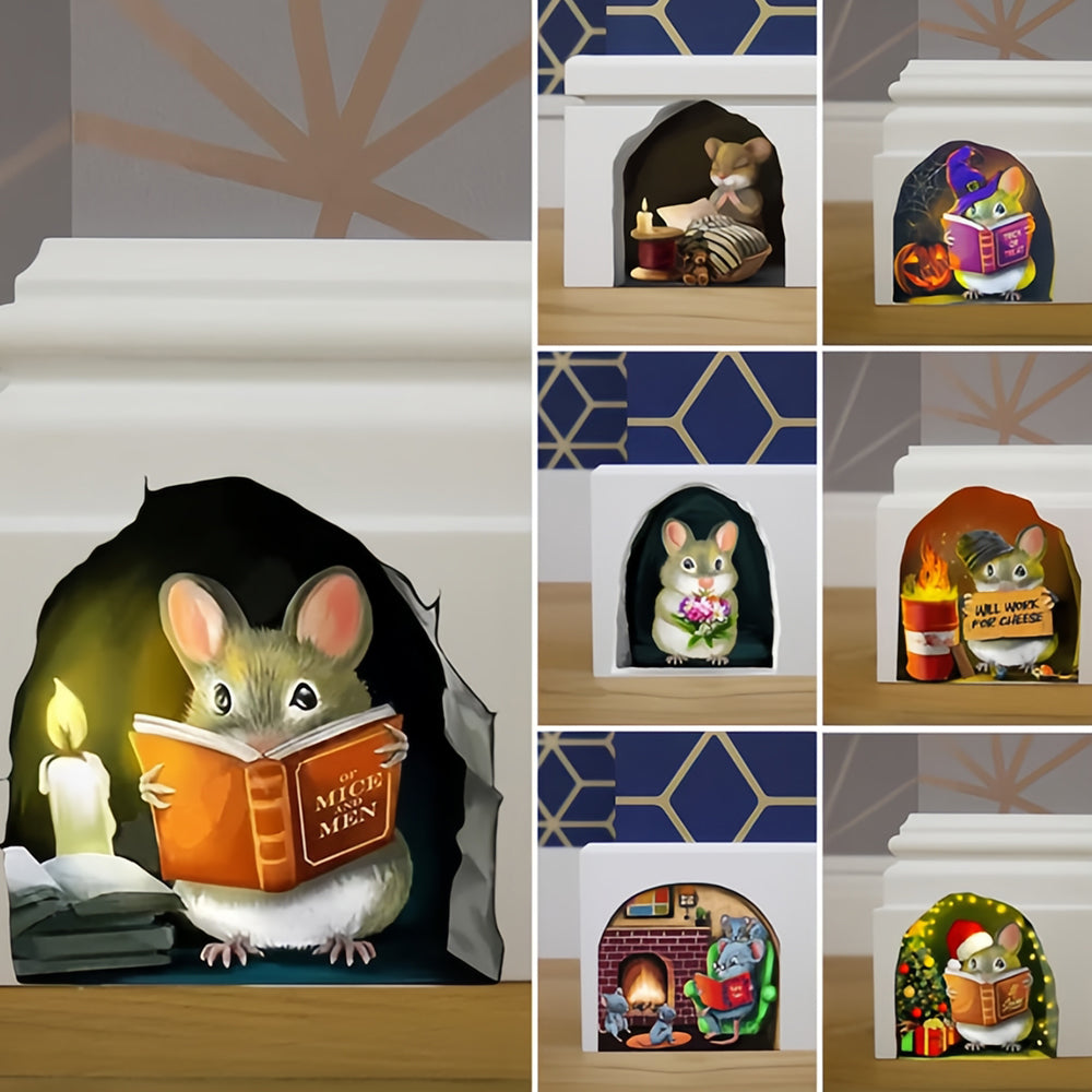 - This listing is for a charming reading mouse hole wall sticker. The mouse, who is tucked up in his mouse hole, reading a book (Steinbeck's 'Of Mice and Men') by candlelight, is an ideal addition to book-loving homes. The wall sticker also makes a unique teacher gift, and a sweet addition to college dorm décor, libraries, and reading nooks.