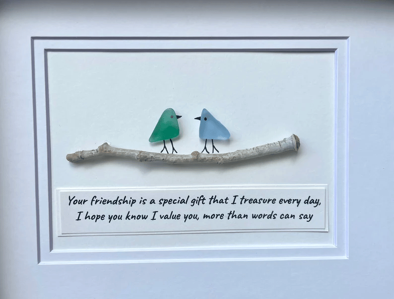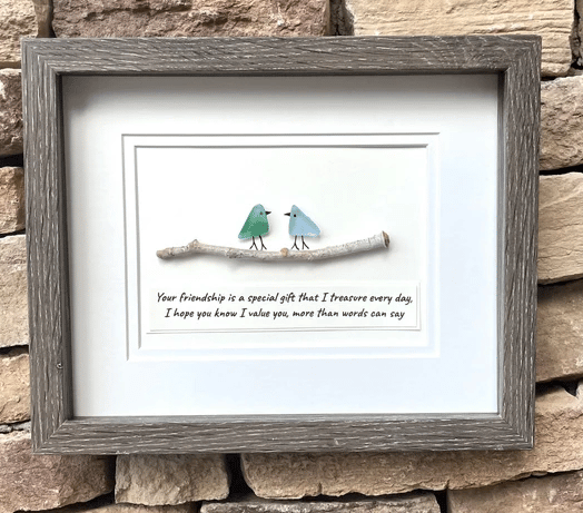 - Seaglass birds best friend gift in a white box frameā¤ļø"Thankful to Have a Friend Like You".ā¤ļø