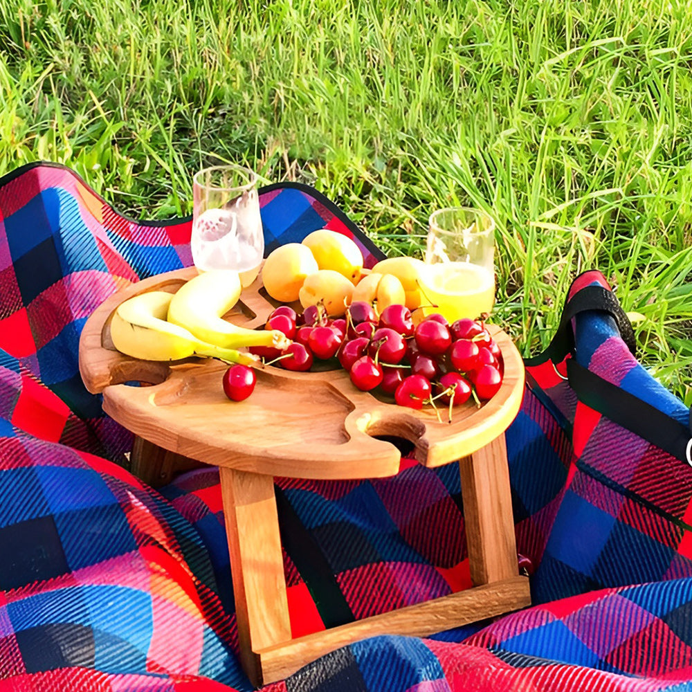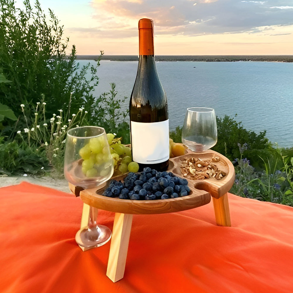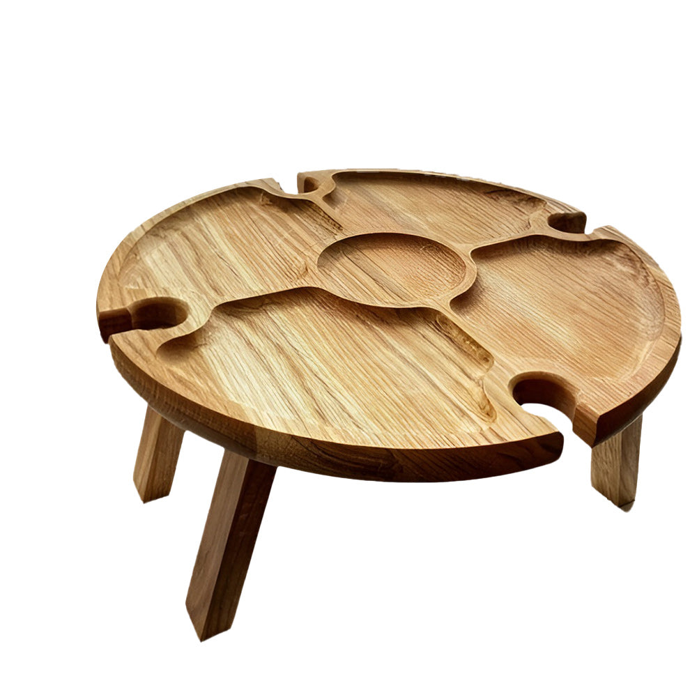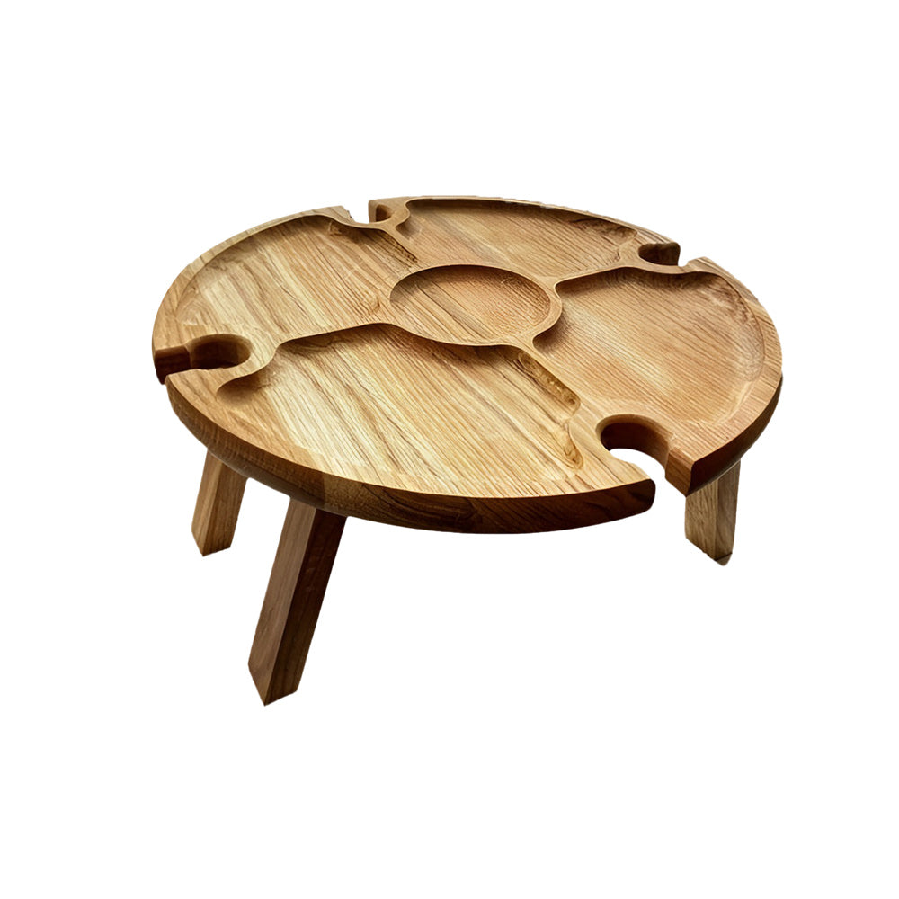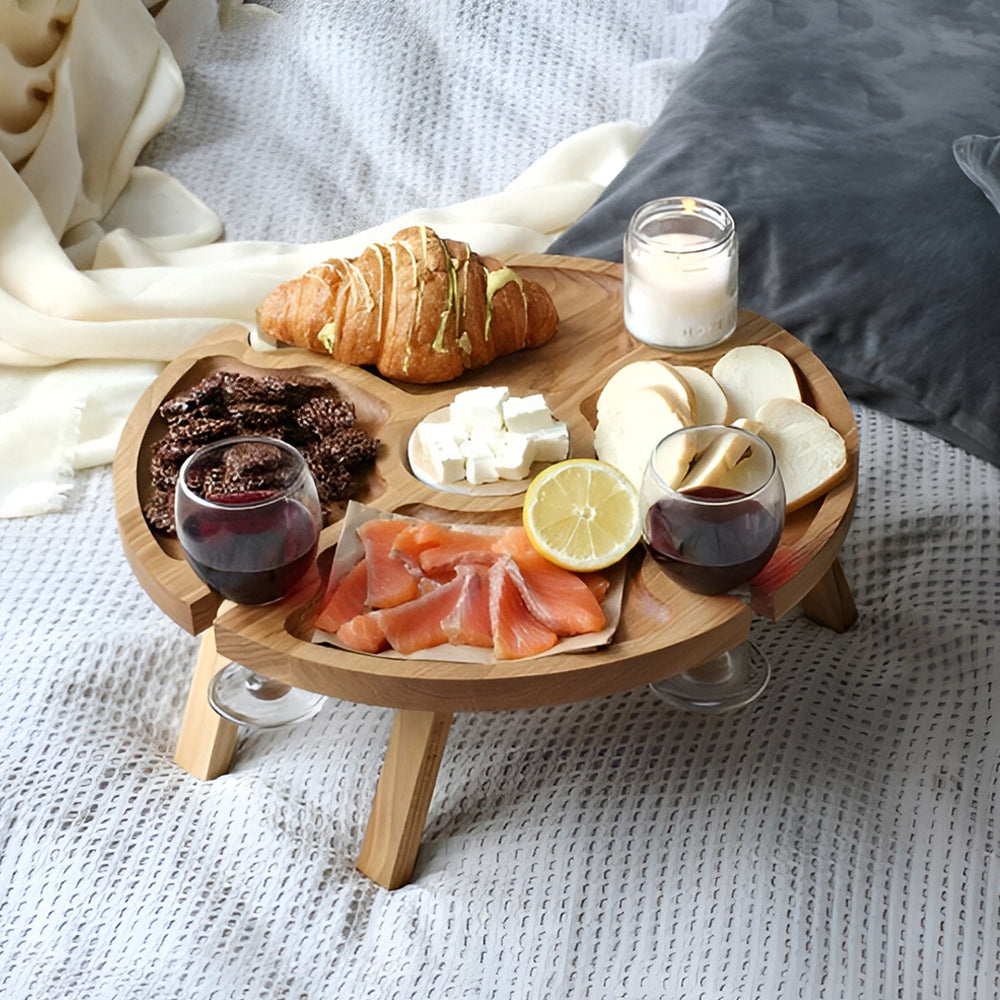 - The table will ideally take its place both at the dining table and on a cozy carpet near the fireplace and even on a picnic. It’s two in one, like a wine table + compartmental dish for cheese and fruit.