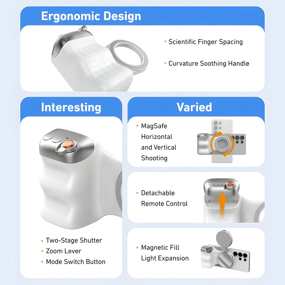 Magnetic Phone Camera Grip with Wireless Shutter – DSLR-Style Handle for iPhone & Android