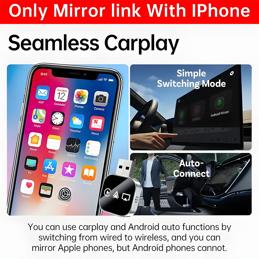 2026 Upgrade 3 in 1 Screen Mirror iOS Phone, wired to wireless Carplay adapter
