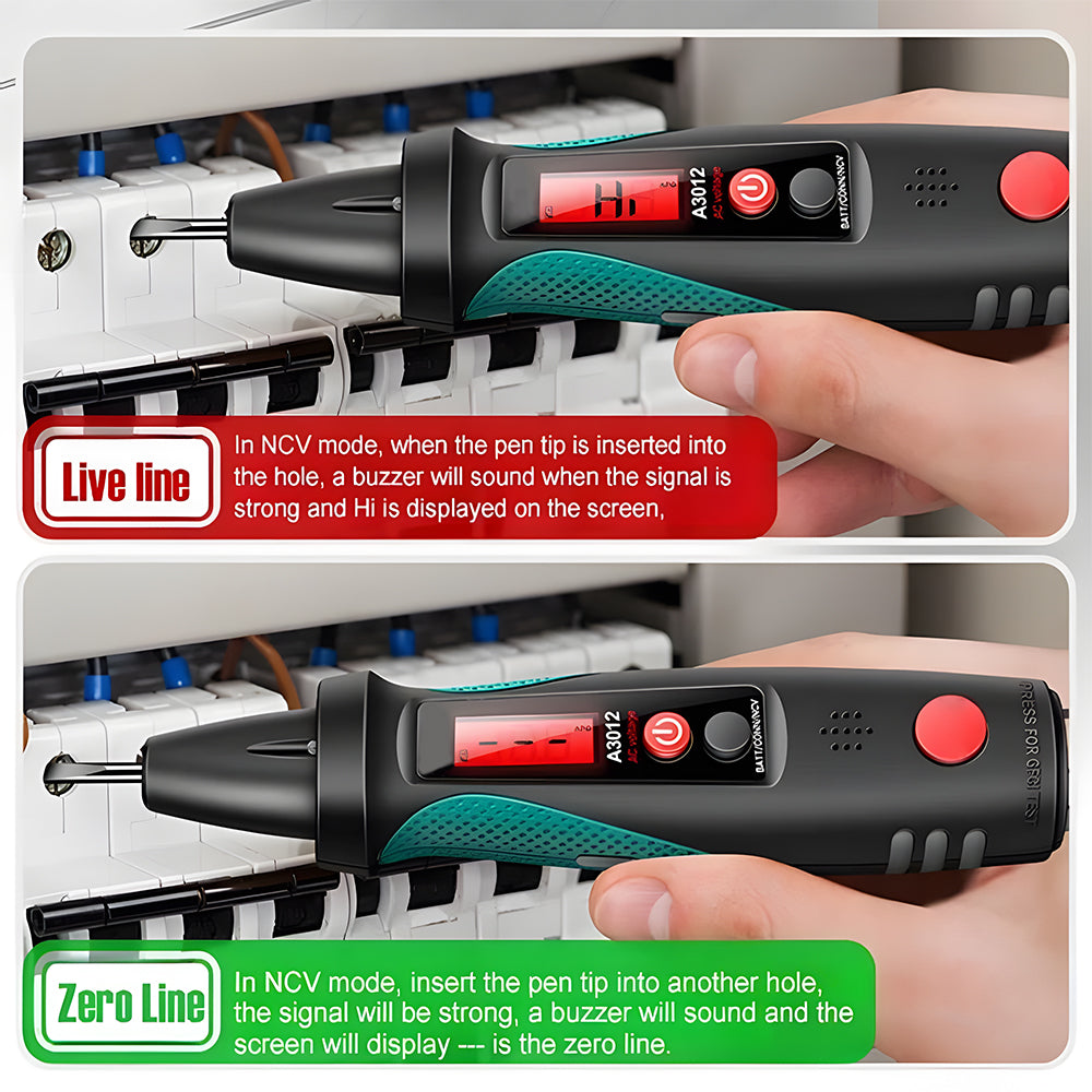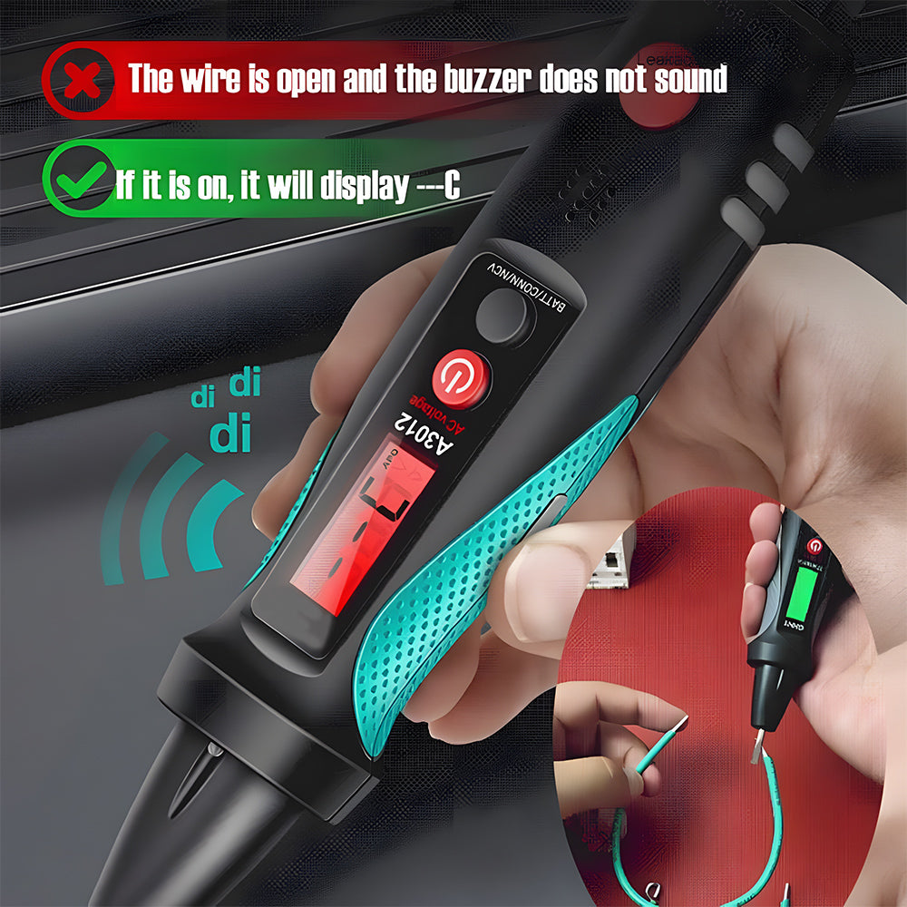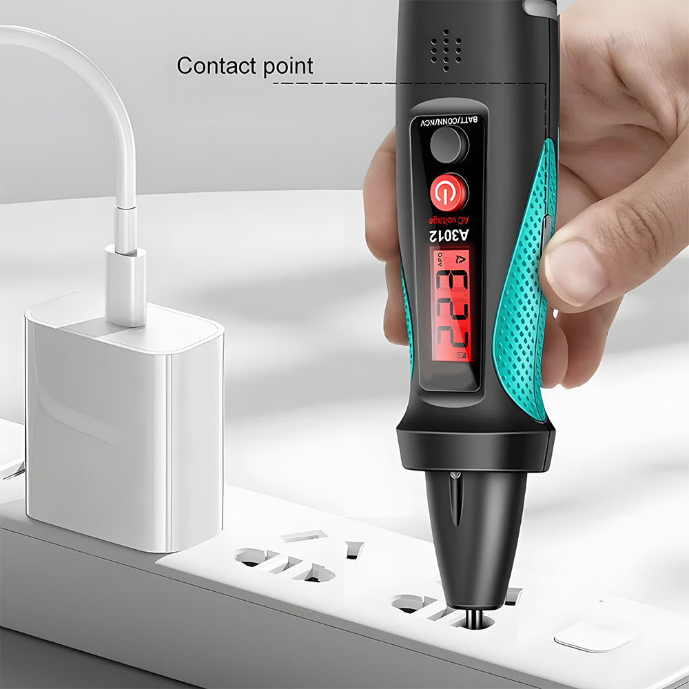 - Non-Contact Voltage: Place the probe tip of the test pen close to the AC voltage source, and ensure reliable contact between the finger and the contact point. The closer it is to the power source, the more urgent the alarm will sound.