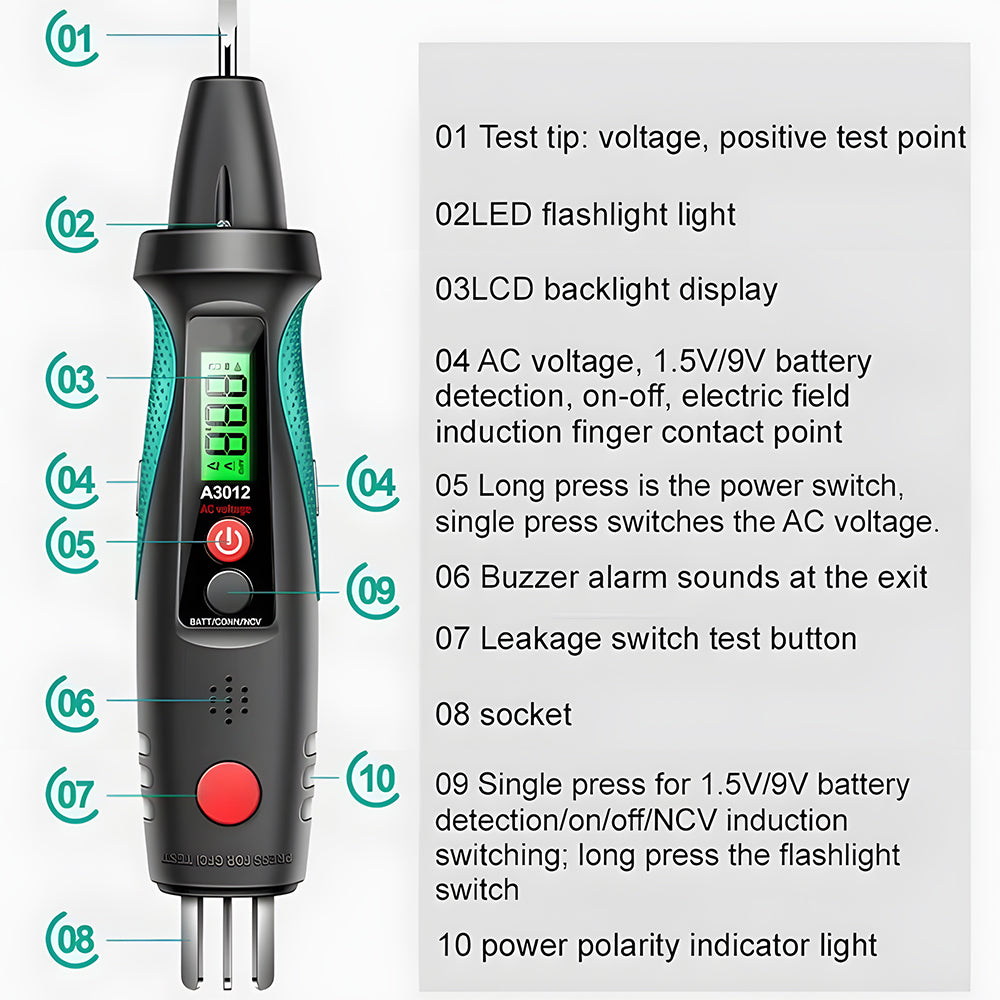 - AC Voltage Detector, Multifunctional Socket Circuit AC/ Voltage Tester Intelligent Power Polarity Detector Leakage Test Tools