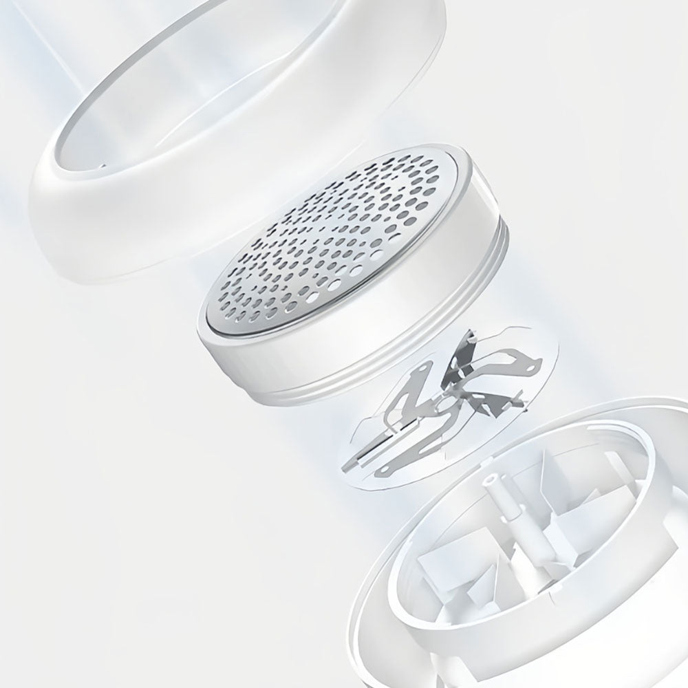 The revolutionary Fabric Shaver uses a rotating inner blade that spins to remove and collect excess fuzz on your clothing instantly. Safe to touch, the Fabric Shaver has a guard that doesn't allow any damage to the fabric or your hands.