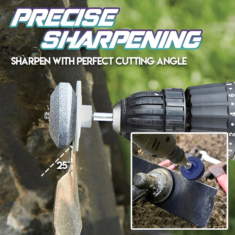Just like a drill bit, install the sharpener onto your power drill and it is ready to sharpen any dull blade, it is a necessary tool to pair with lawn mower and lawn tractor' blades. Lawnmower Dull Blade Sharpener is Made of brown corundum which has high durability and suitable for long time usage.