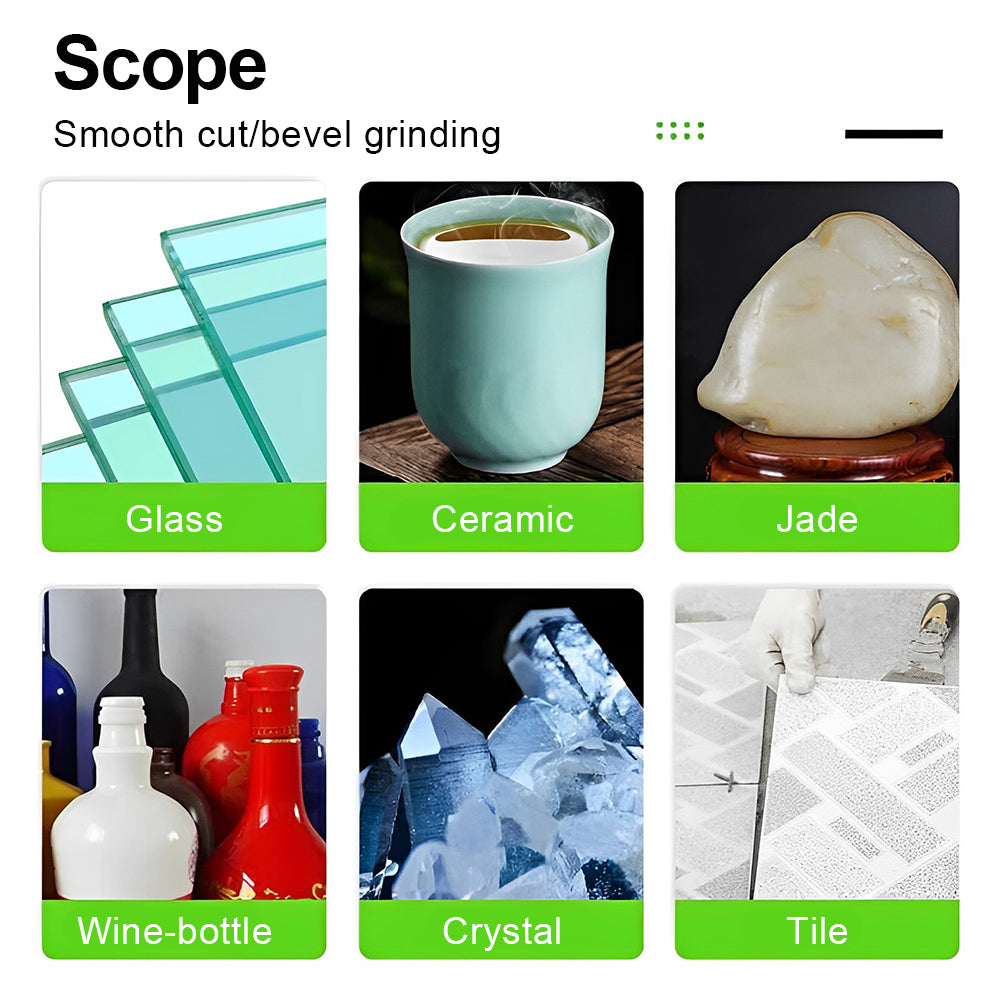 Scope: Suitable for smooth cutting and grinding of glass, jade, crystal, wine bottles, ceramics, ceramic tiles, and other materials.