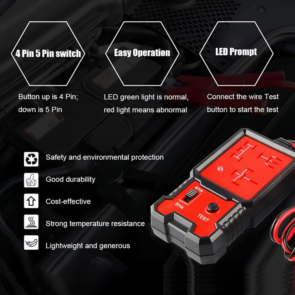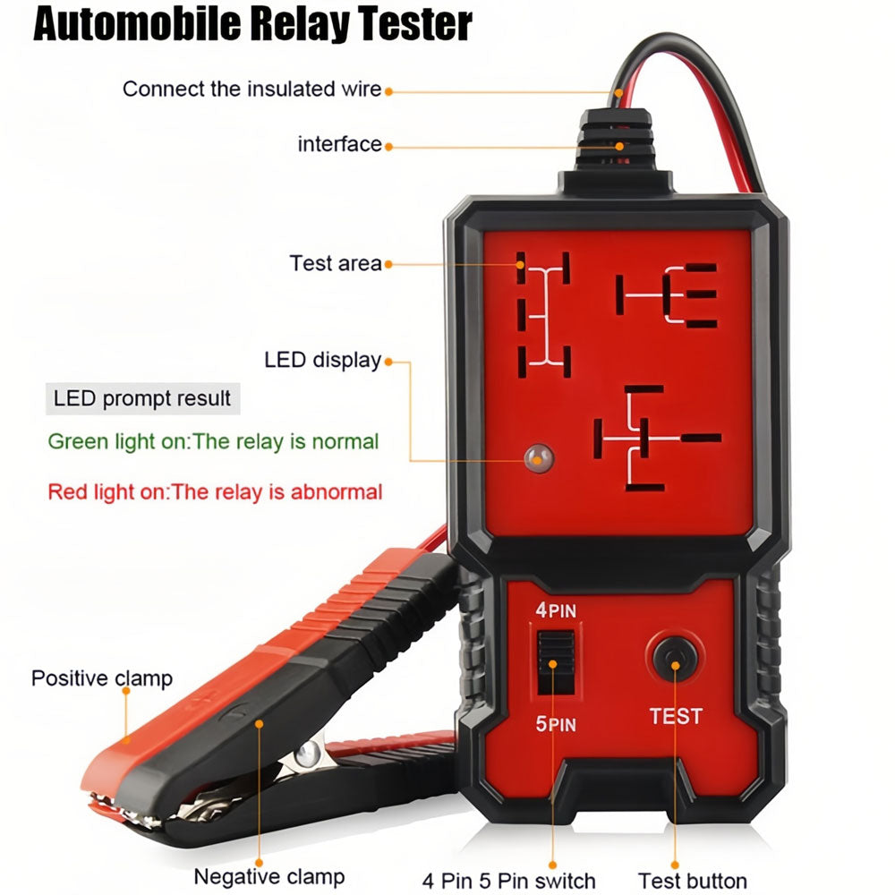 - Our automotive Relay tester is small and easy to carry around for on-the-go jobs or for easy storage. Its compact design allows easy use no matter where you are.