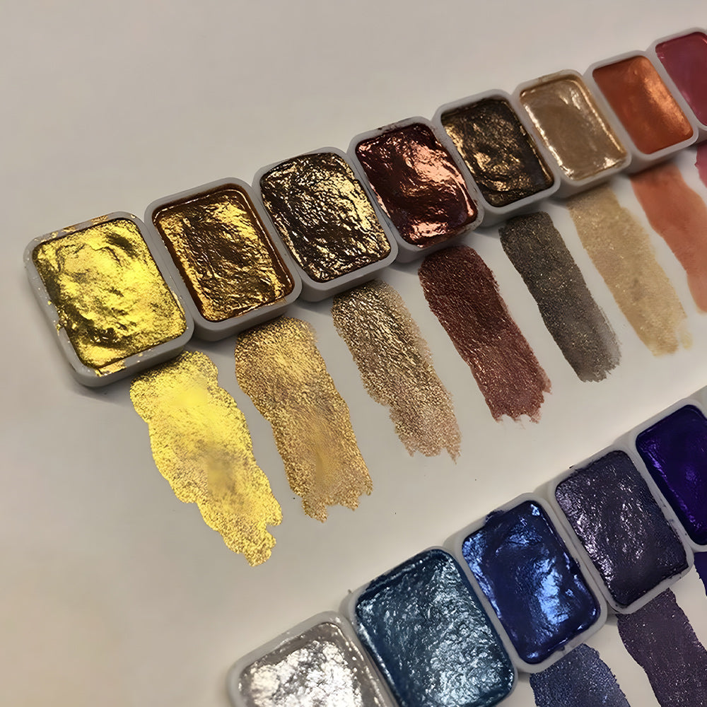 • Giving watercolor projects a fresh shine and shimmer is now easier than ever!All colors are finely milled with mineral mica pigments as well as natural gum Arabic. Each color is given a shimmering effect, allowing your creations to shine in this watercolor set.