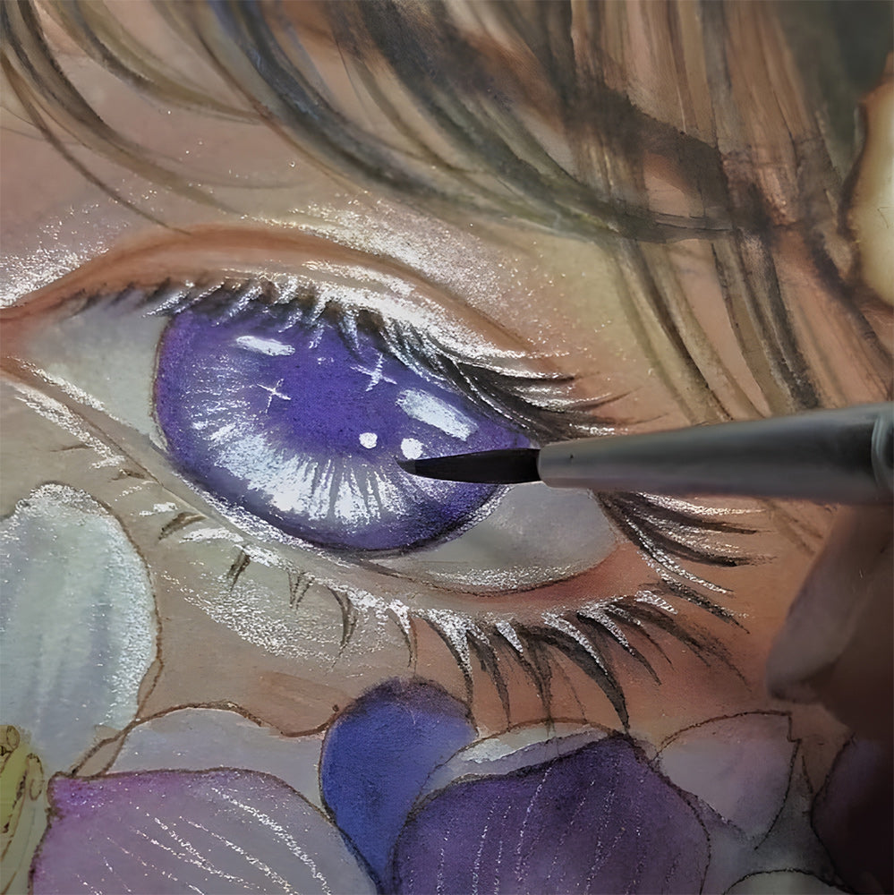 Just add a touch of water to reactivate your shimmer watercolor paints and you’re ready to begin.