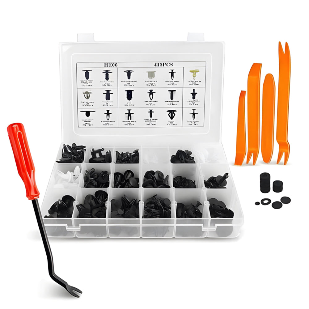 - PERFECT FOR YOUR NEEDS - Up to 415 retaining clips in a plastic box allow you to freely build your vehicle accessories at any time. It's definitely cheaper than going to the auto parts shop.