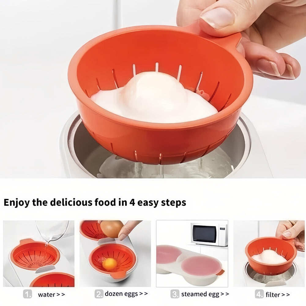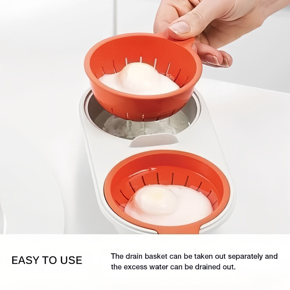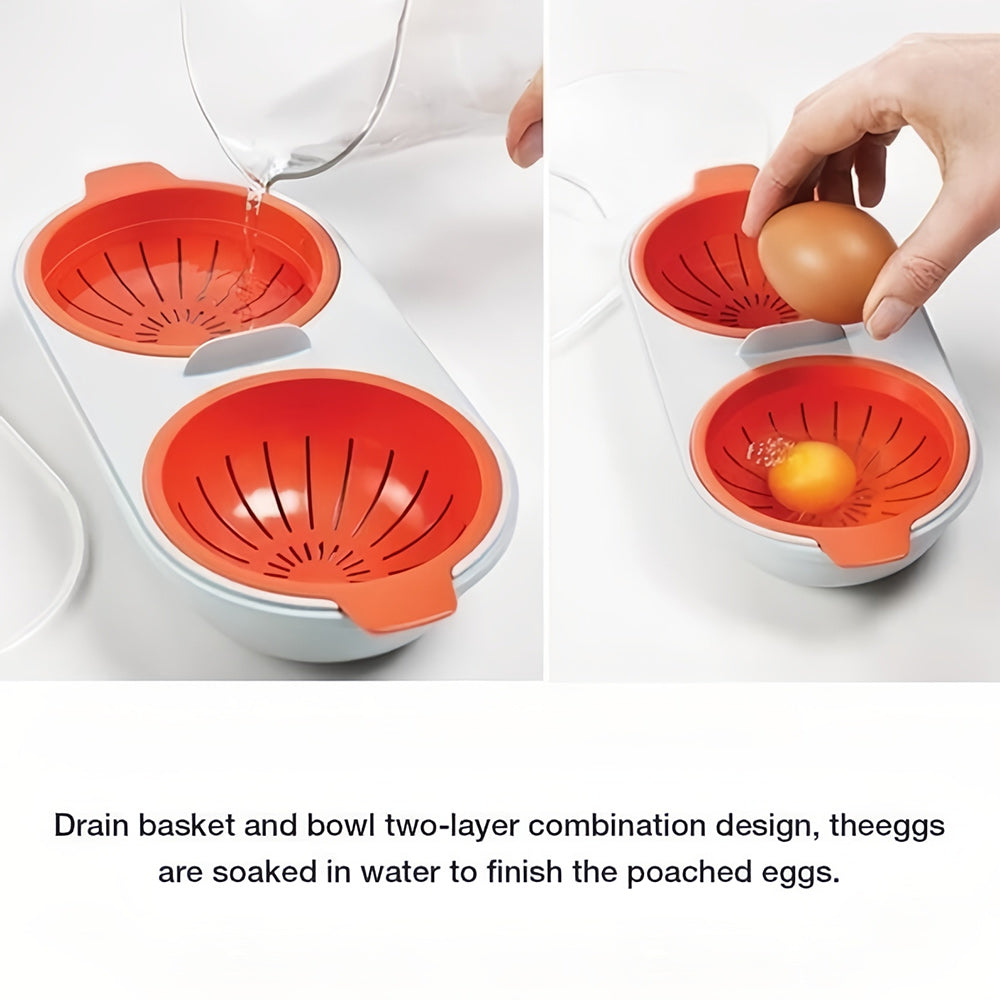 - [Two-layer] : Designed by two layers of drain basket and bowl, soak the eggs in water to finish poached eggs. It can be used to steam eggs in the microwave and keep the water and nutrient of eggs, which makes eggs taste fresh.