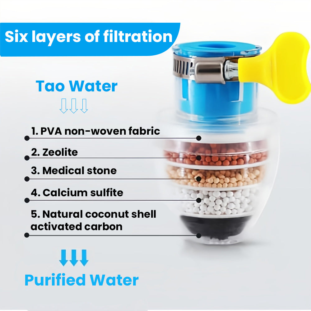 TAP WATER FILTER: The built-in layer filter can separate coconut activated carbon, zeolite, PVA non-woven, calcium sulfite and rubber, and is used to purify hard water and well water.