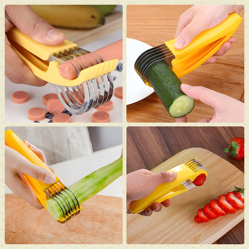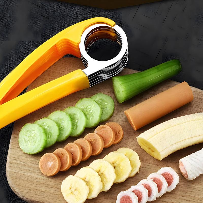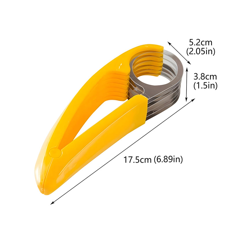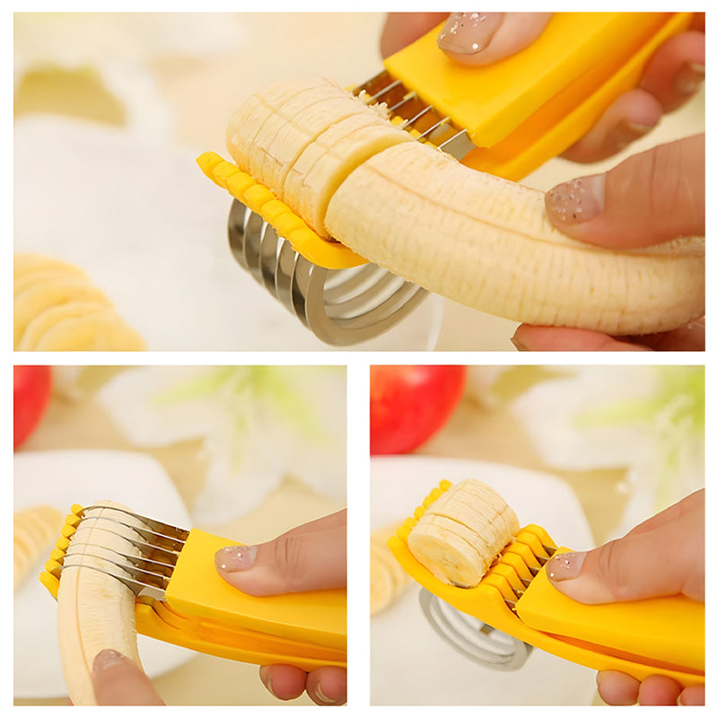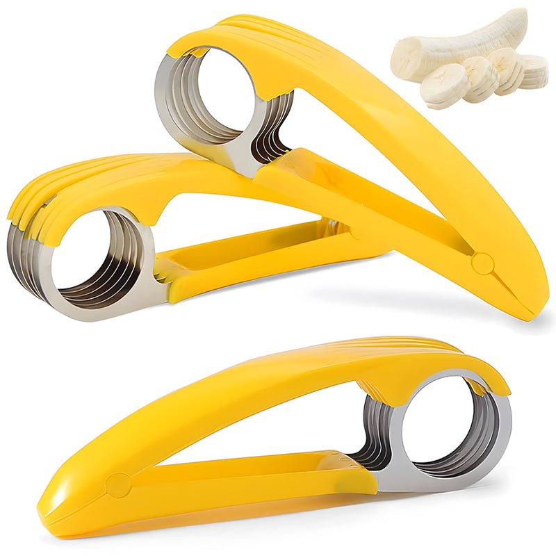 - Save time and effort with this banana cutter slicer. Slice evenly in one pass while enjoying a comfortable grip, thanks to its ergonomic design and easy-to-press handle.
